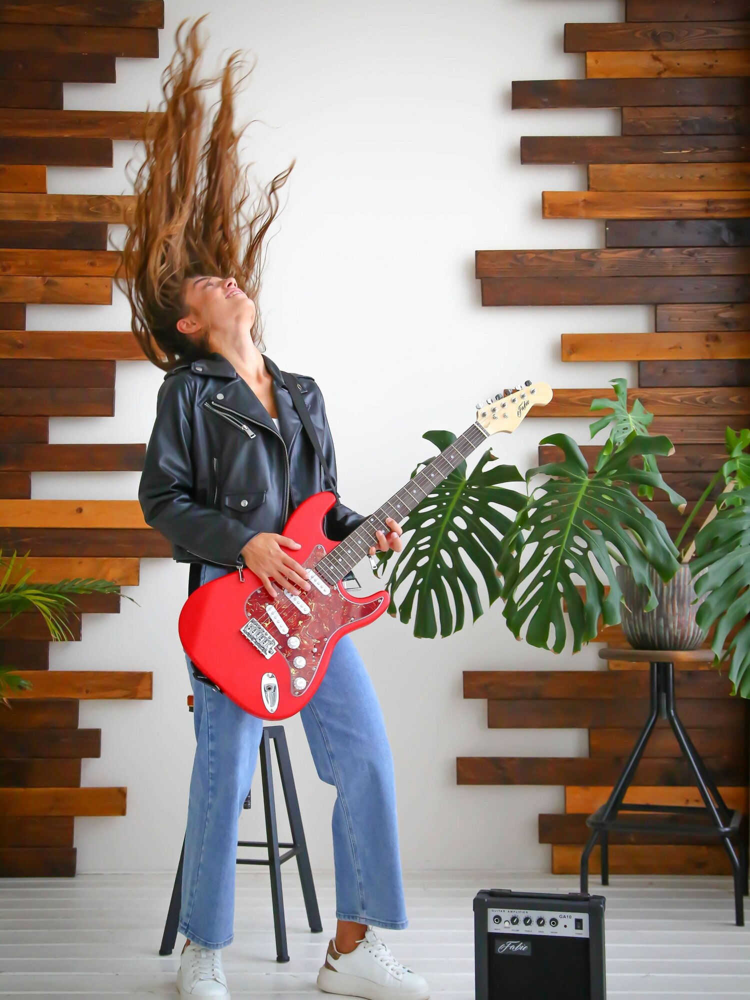 Электрогитара Stratocaster Красная Fabio ST100 RDS S-S-S, 1V+2T (Набор электрогитары с комбоусилитем)