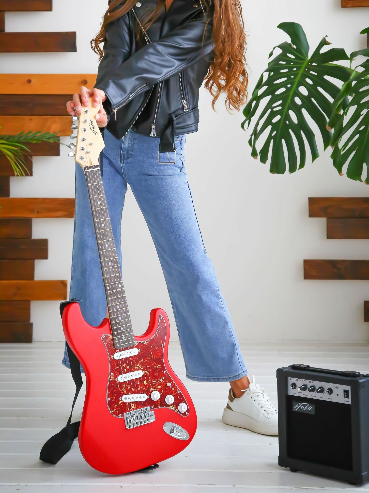 Электрогитара Stratocaster Красная Fabio ST100 MATT RD S-S-S, 1V+2T (Набор электрогитары с комбоусилитем)