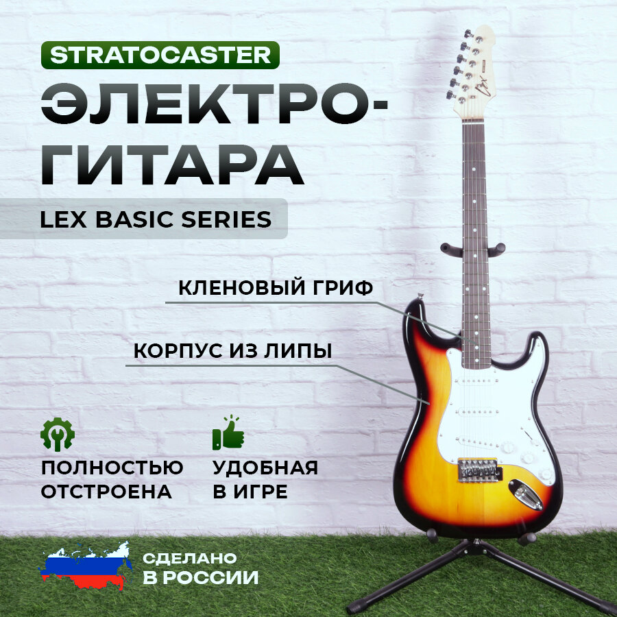 Комплект 10 в 1 Электрогитара с комбоусилителем, Lexguitar Stratocaster Sunberst Super