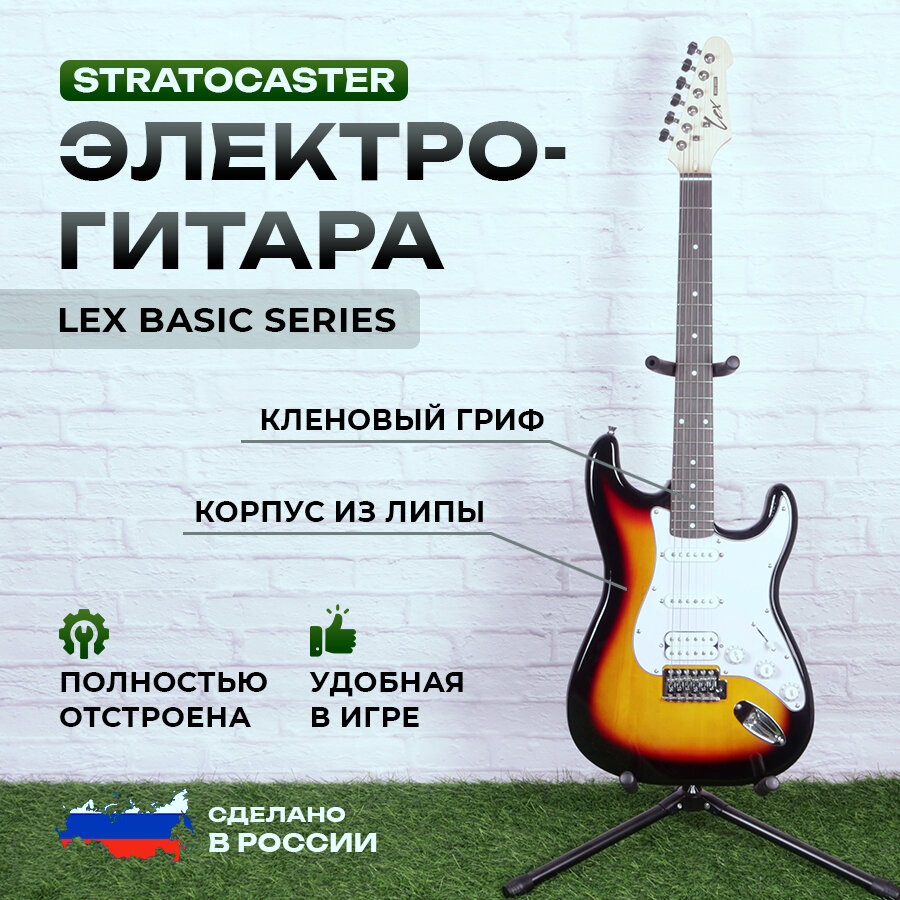 Комплект 10 в 1 Электрогитара с комбоусилителем, Lexguitar Stratocaster Sunberst Super интересное: