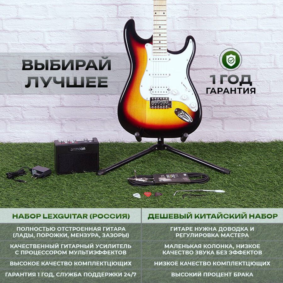 Купить Комплект 5 в 1 электрогитара Lex SunBerst Stratocaster, комбоусилитель с процессором эффектов, аксессуары