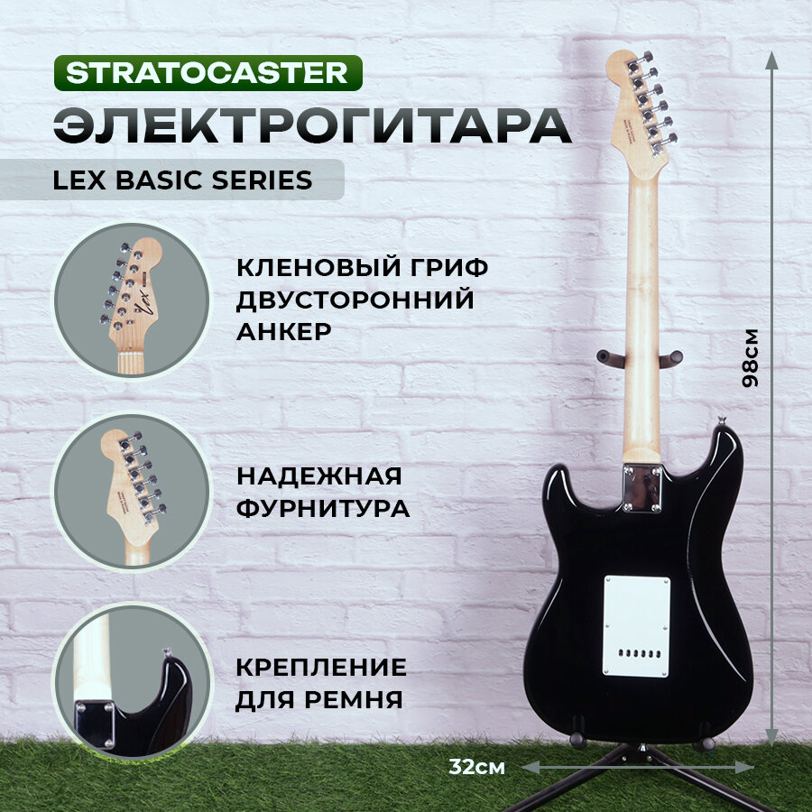 Комплект 5 в 1 электрогитара Lex Black White Super Stratocaster, комбоусилитель с процессором эффектов, аксессуары