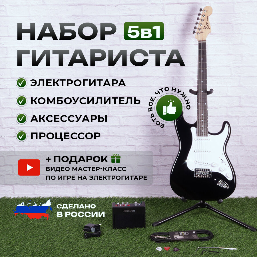 Комплект 5 в 1 электрогитара Lex Black White Super Stratocaster, комбоусилитель с процессором эффектов, аксессуары