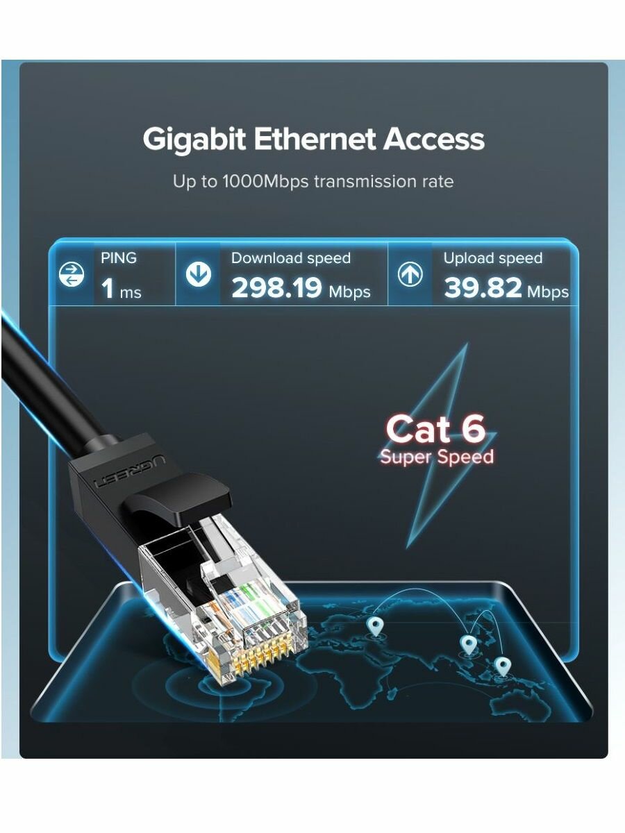 Кабель сетевой UGREEN NW102 (20162) Cat 6 8-Core U/UTP Ethernet Cable. Длина: 5м. Цвет: черный