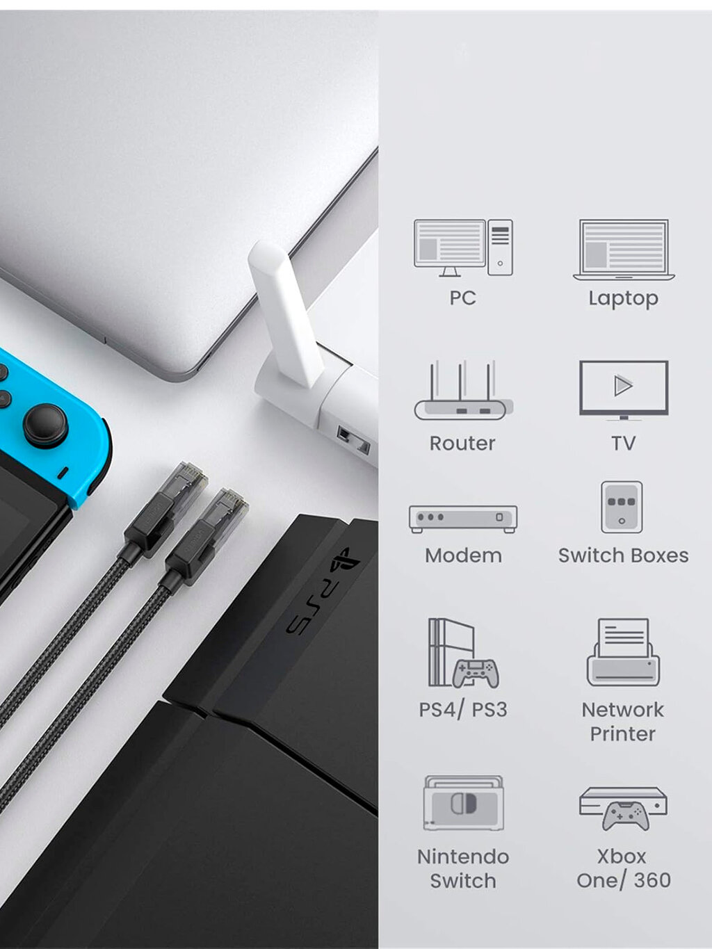 Кабель сетевой UGREEN NW102 (20161) Cat 6 8-Core U/UTP Ethernet Cable (3 метра) чёрный