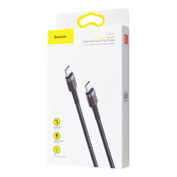 Кабель для зарядки и передачи данных BASEUS Cafule PD2.0/QC3.0 60W, Type-C to Type-C, 20V/3A, 2 м, Черный интересное: