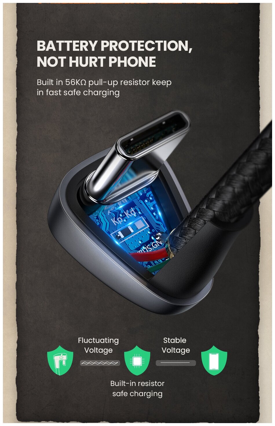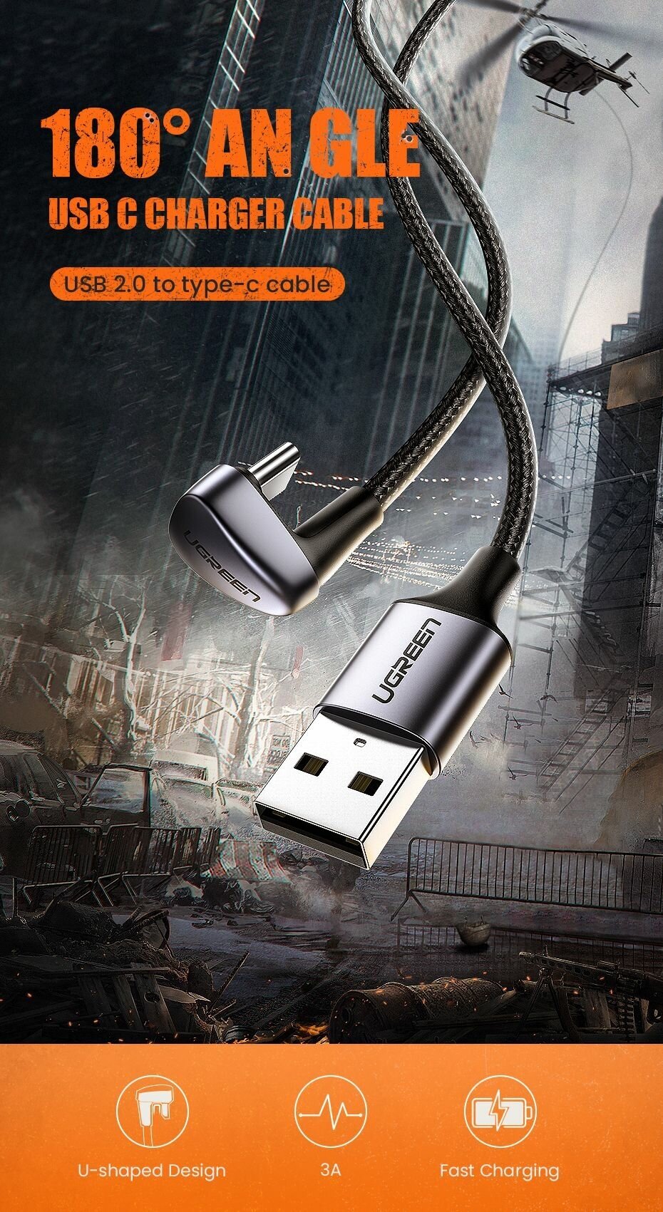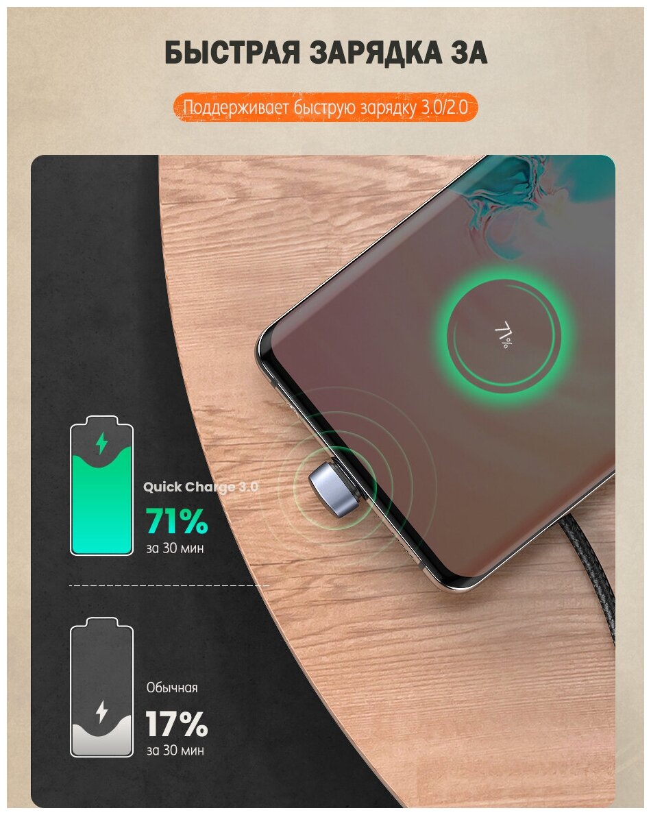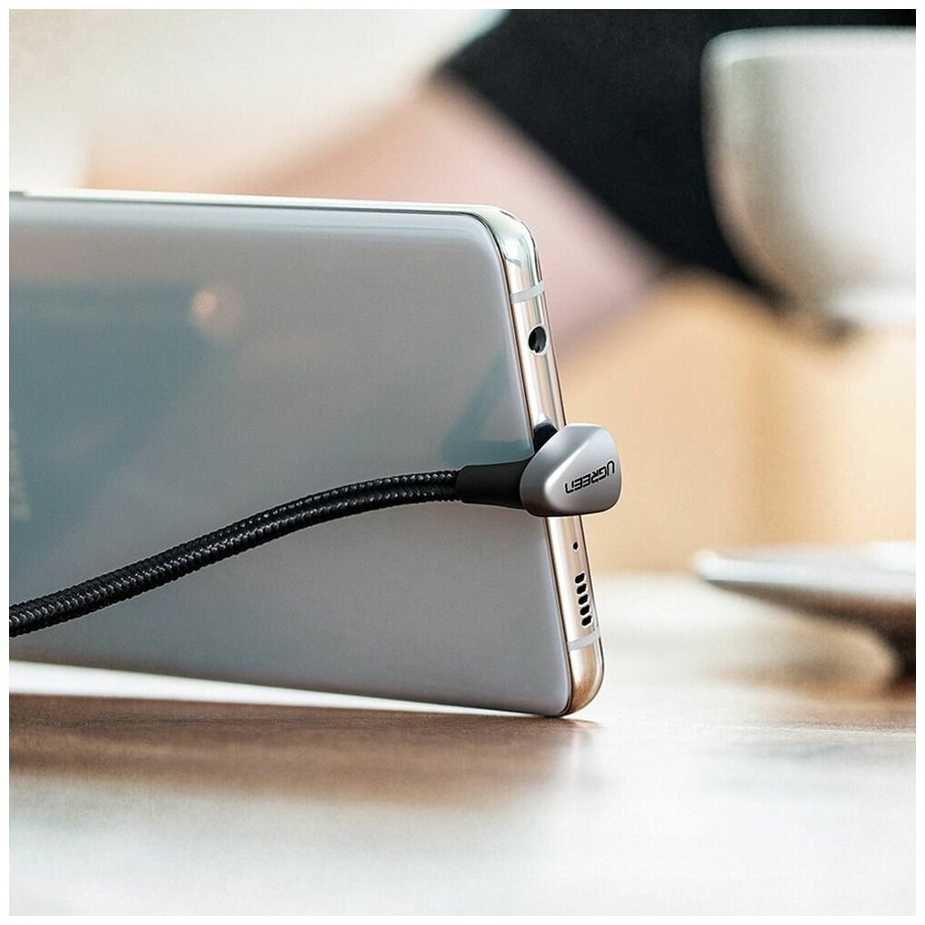 Угловой кабель Ugreen USB C - USB A 2.0, в оплетке, цвет черный, 1 м (70313) интересное: