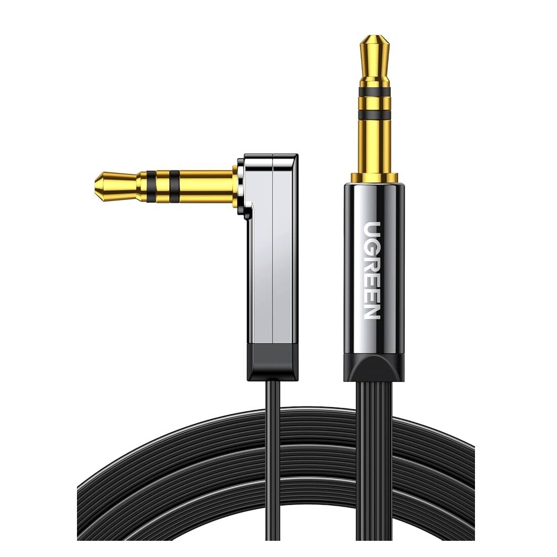 Купить Кабель UGREEN AV119 10599 AUX 3.5mm (M) to AUX 3.5mm (M), угловой 90°, силиконовый, 2m, Black