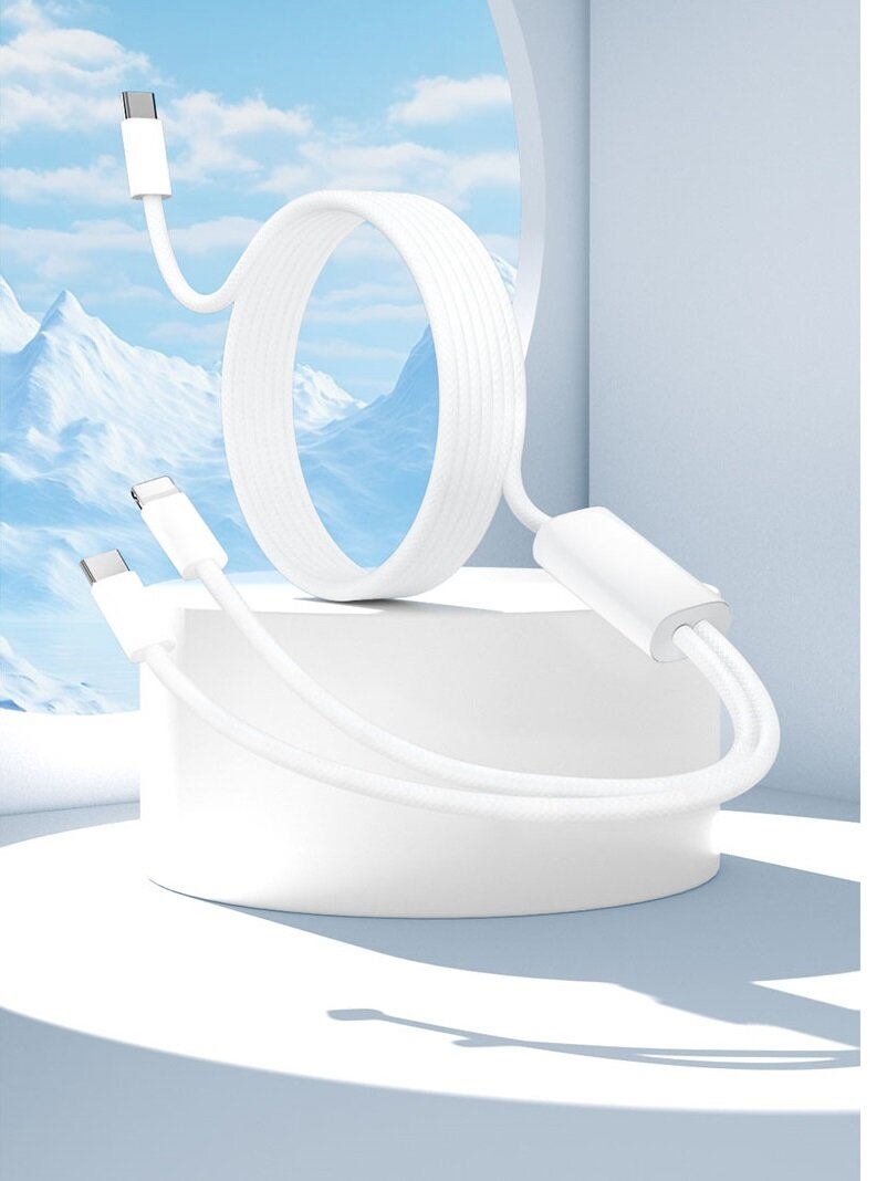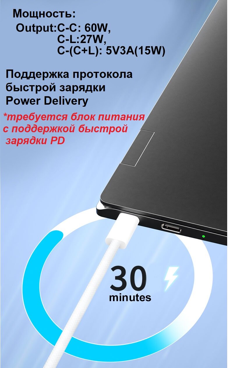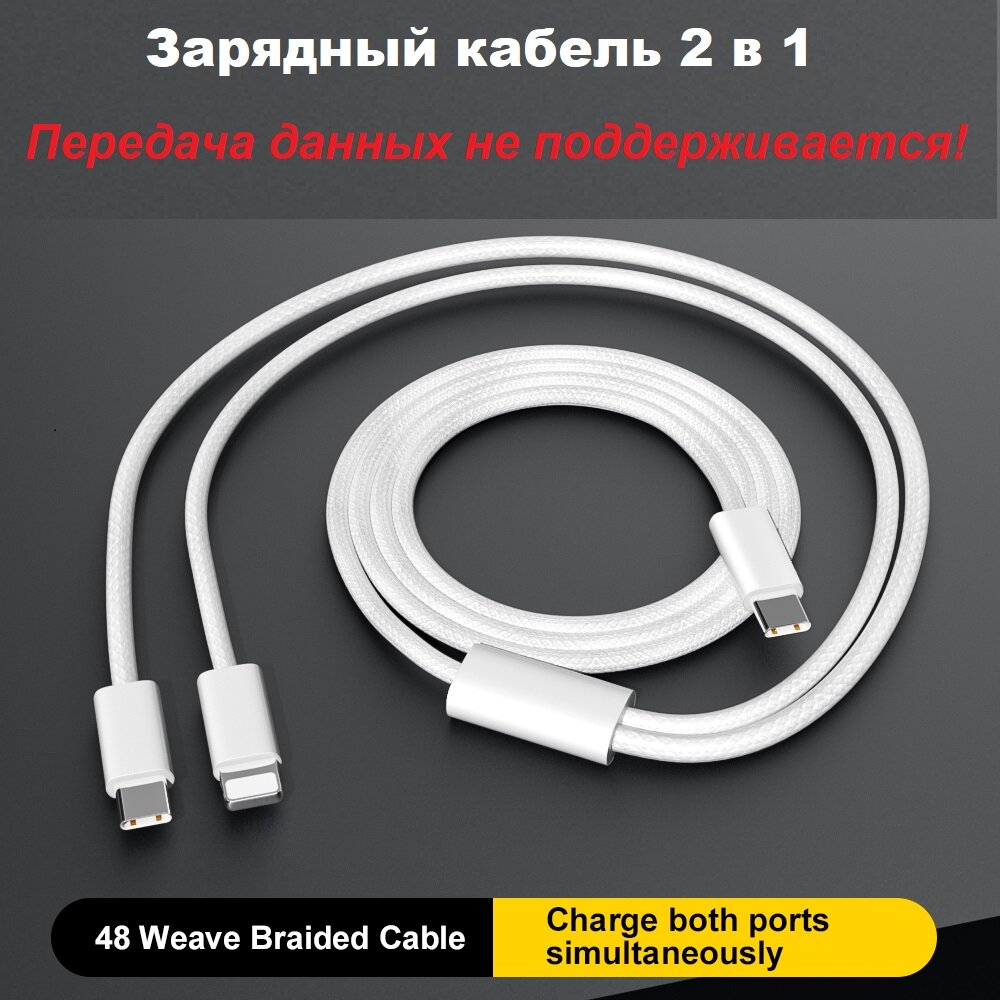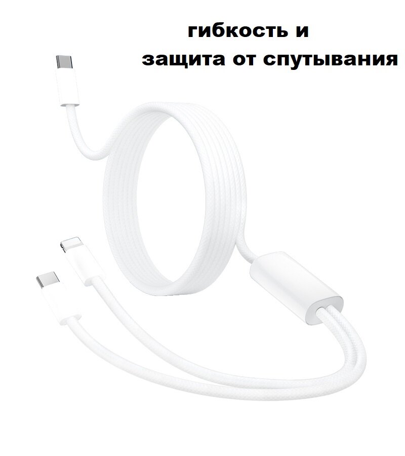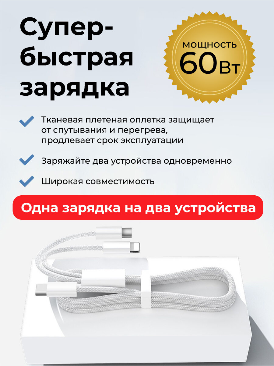 Кабель 2 в 1 USB-C - Lightning + USB-С 3А 60 Вт текстиль интересное: