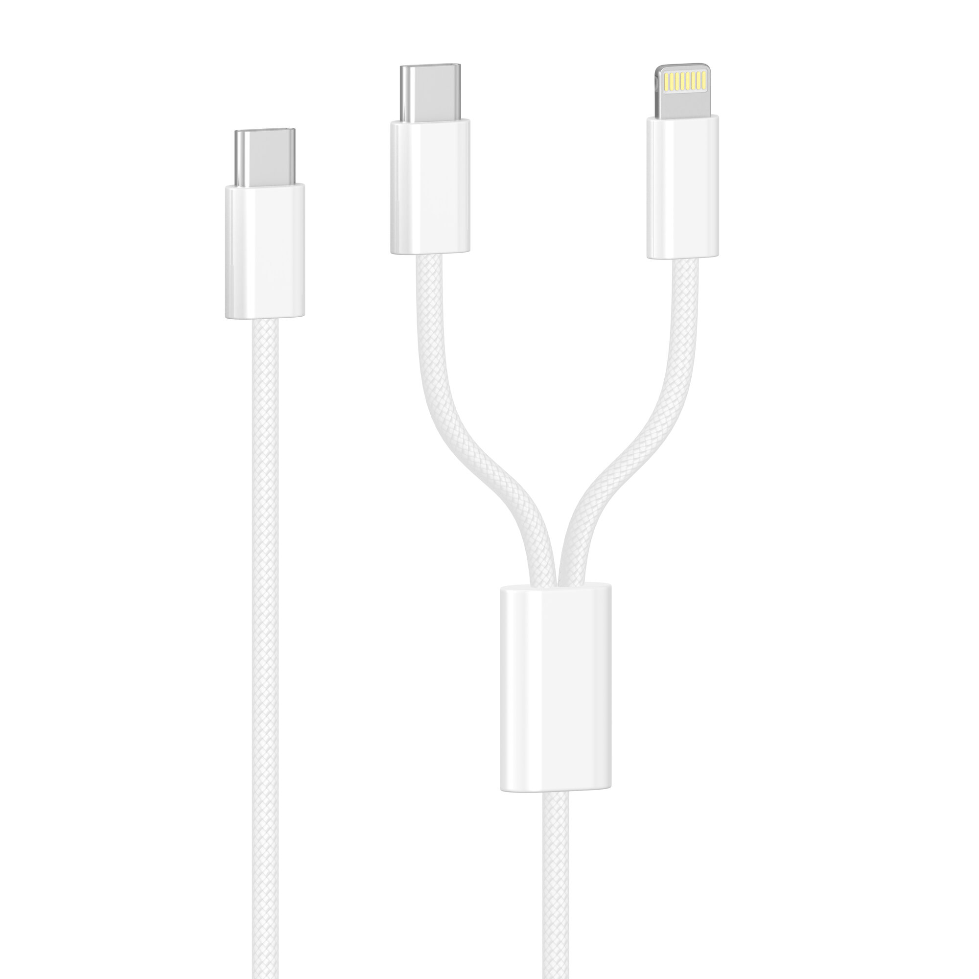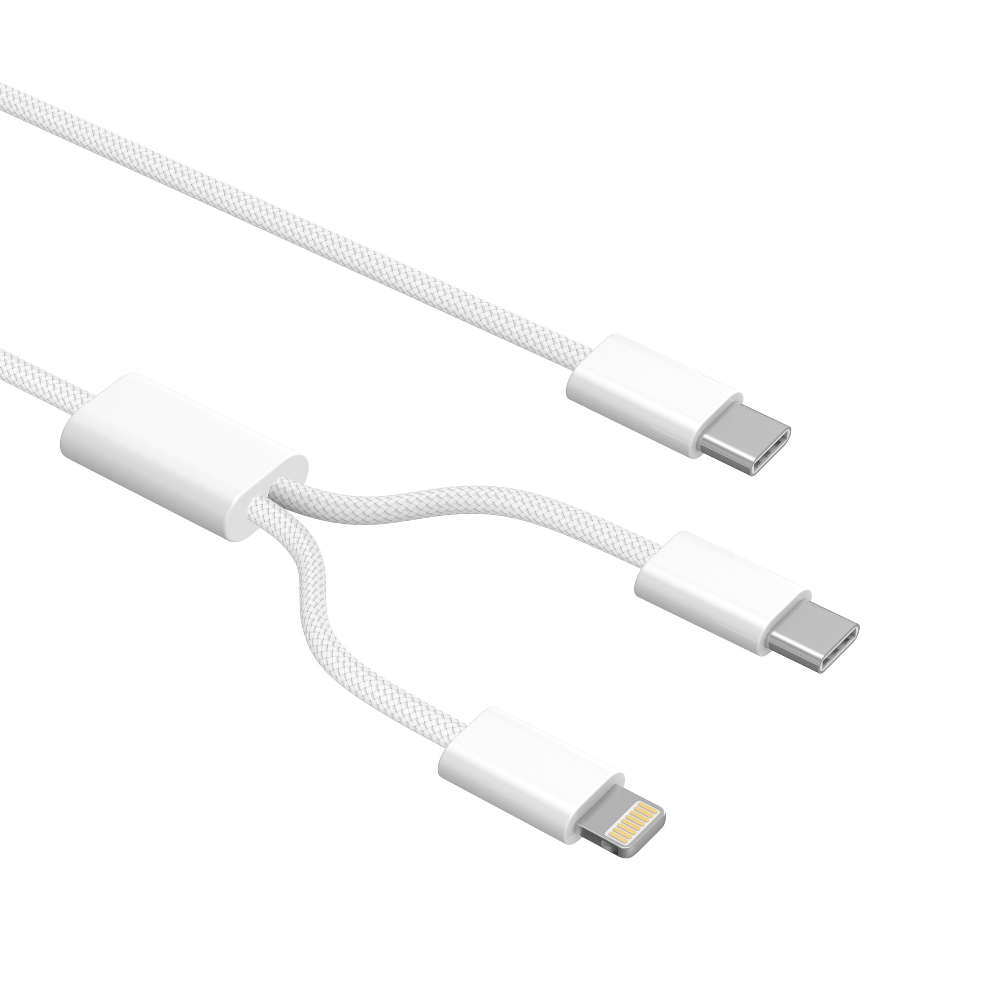 Купить Кабель 2 в 1 USB-C - Lightning + USB-С 3А 60 Вт текстиль