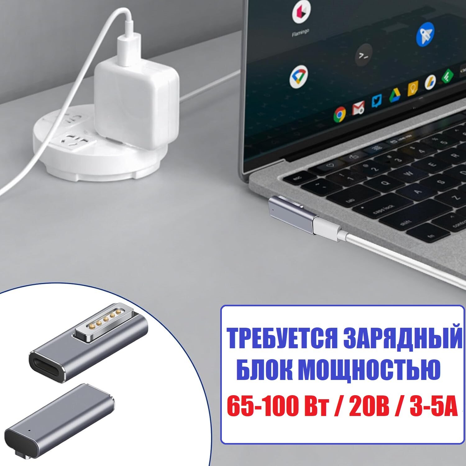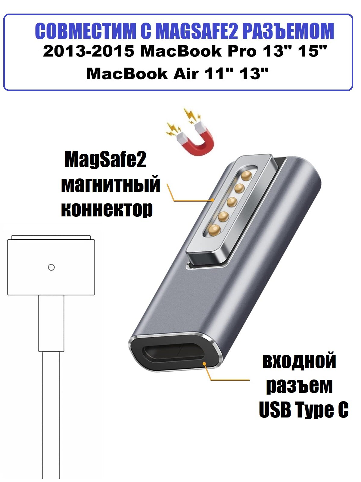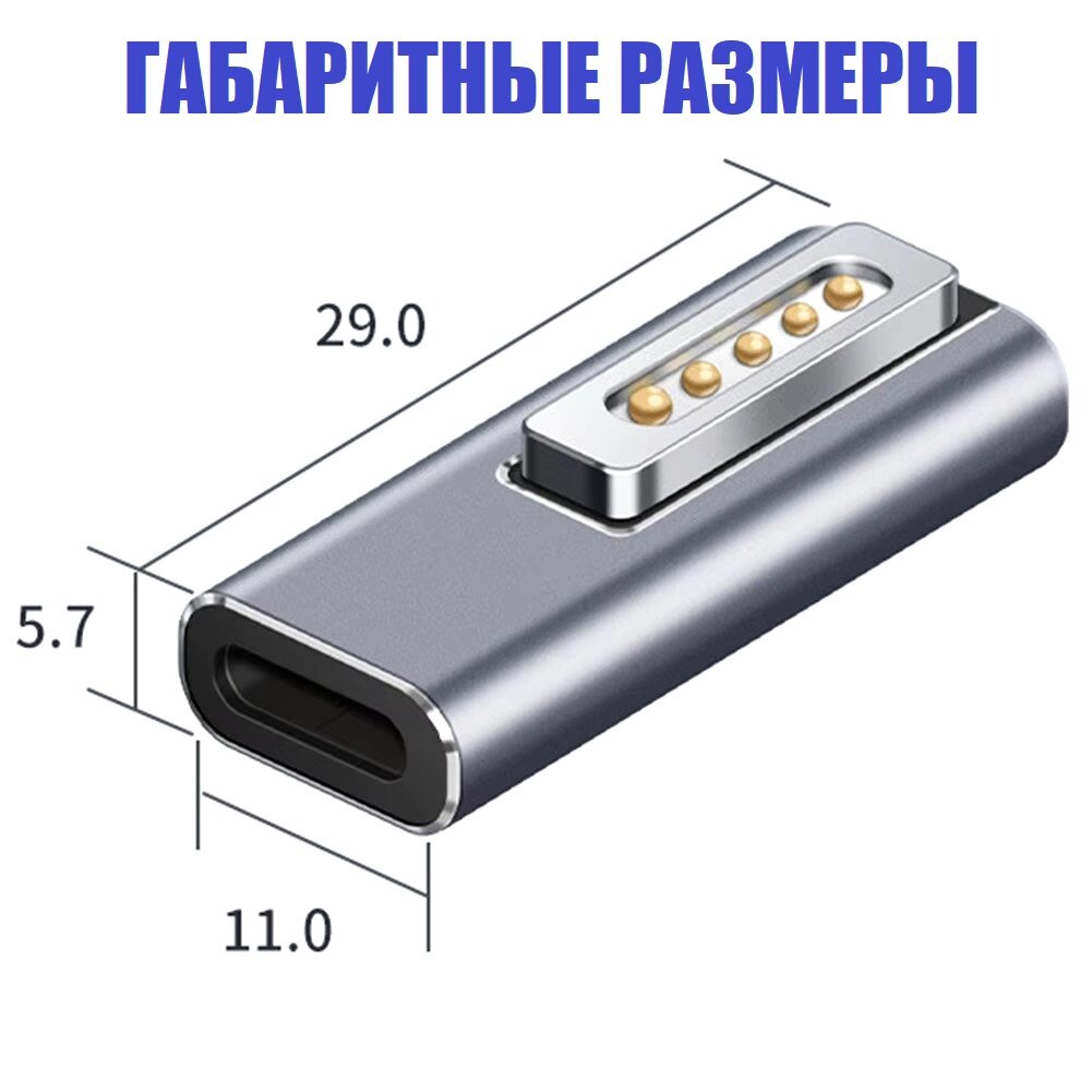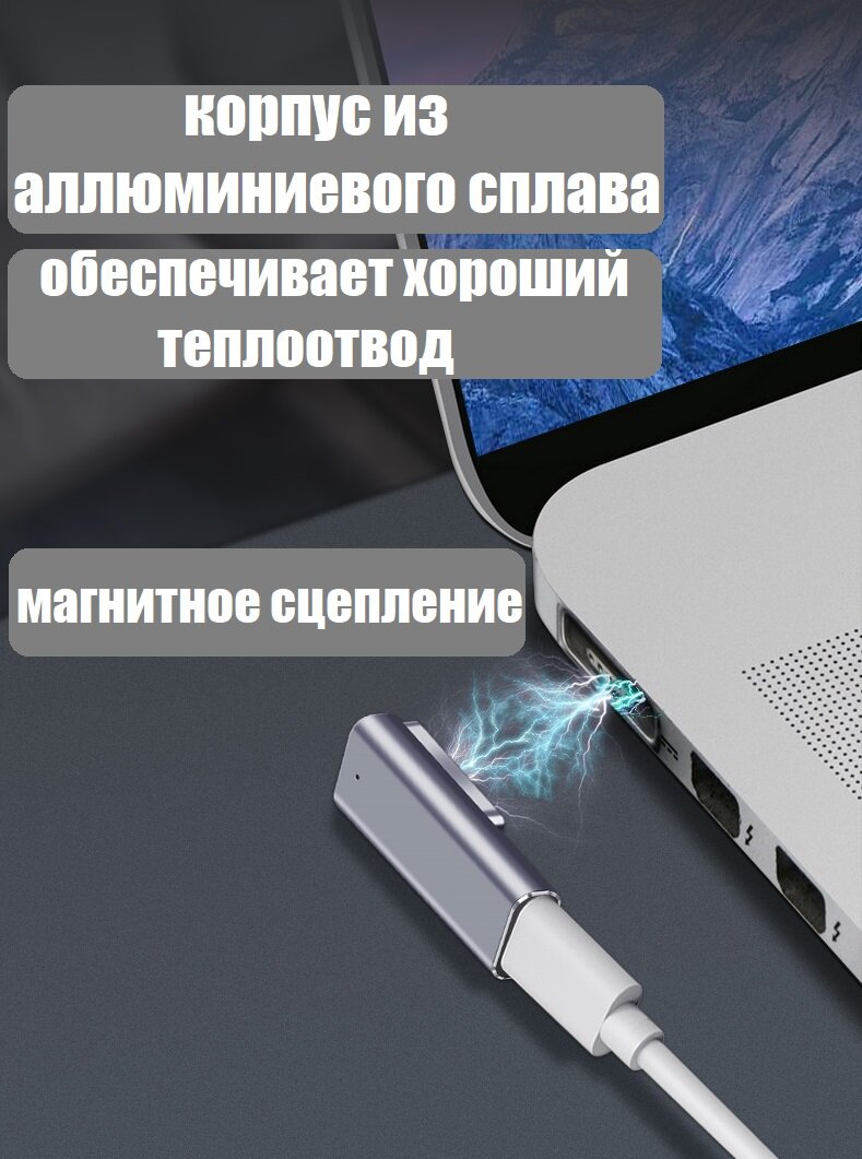 Магнитный переходник USB-C - MagSafe2 угловой 100 Вт 5А PD для зарядки Macbook интересное: