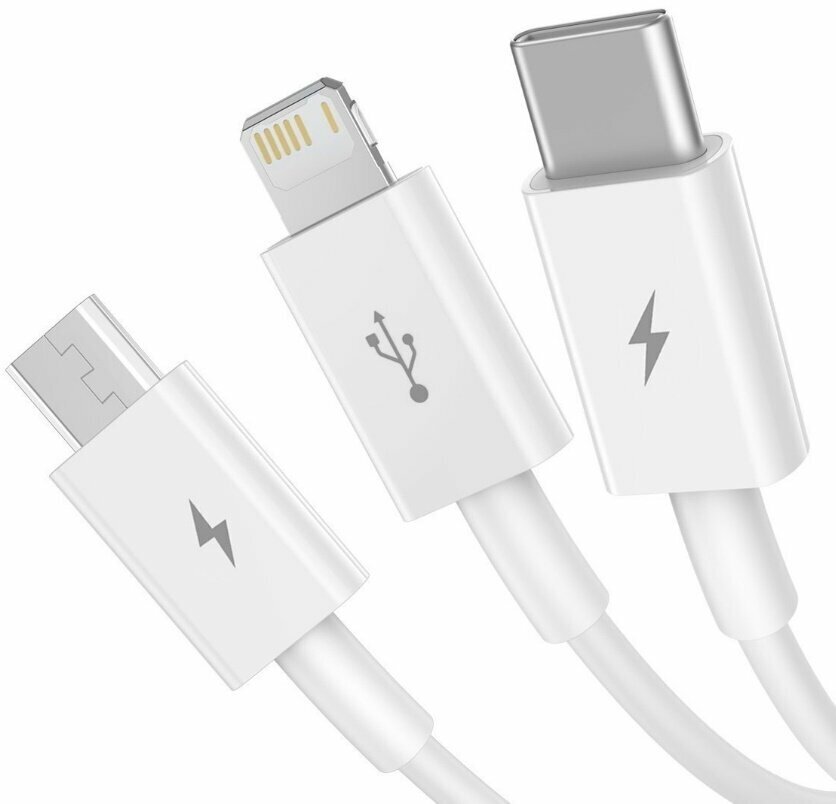 Кабель Baseus Superior Series Fast Charging Data Cable USB to M+L+C 3.5A 1.5m White (CAMLTYS-02) интересное: