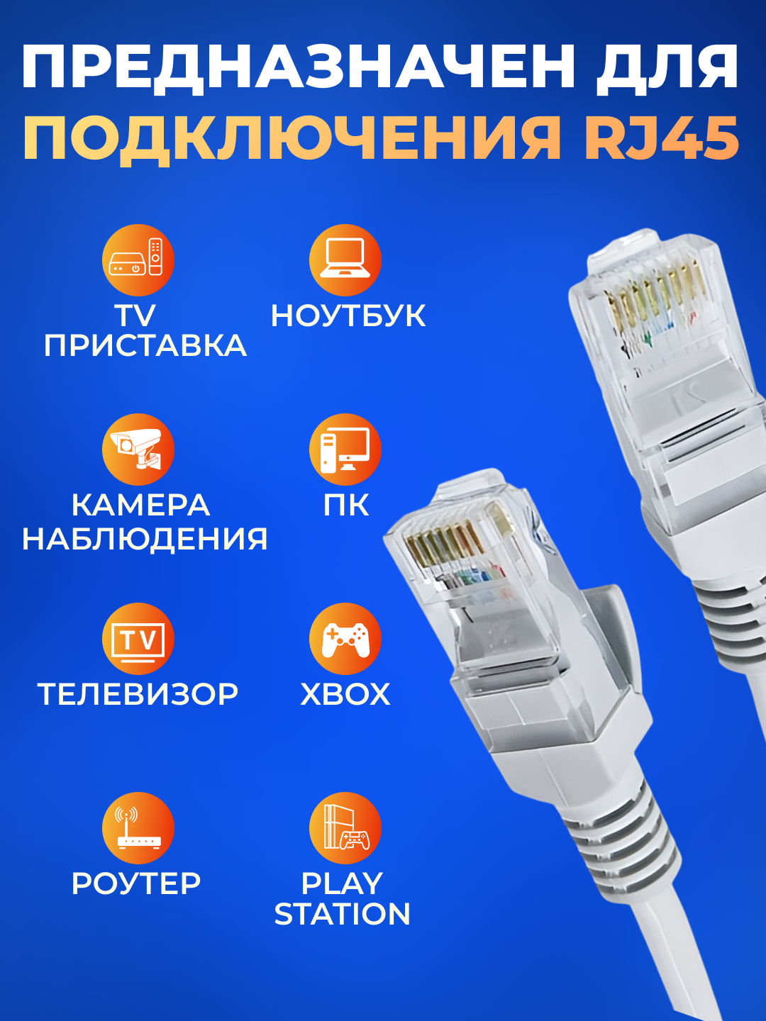 СохранитьПатч корд 10 м кат 5е, интернет кабель RJ45 Cat.5e UTP, сетевой Ethernet Lan для соединения интернета роутера, серый интересное: