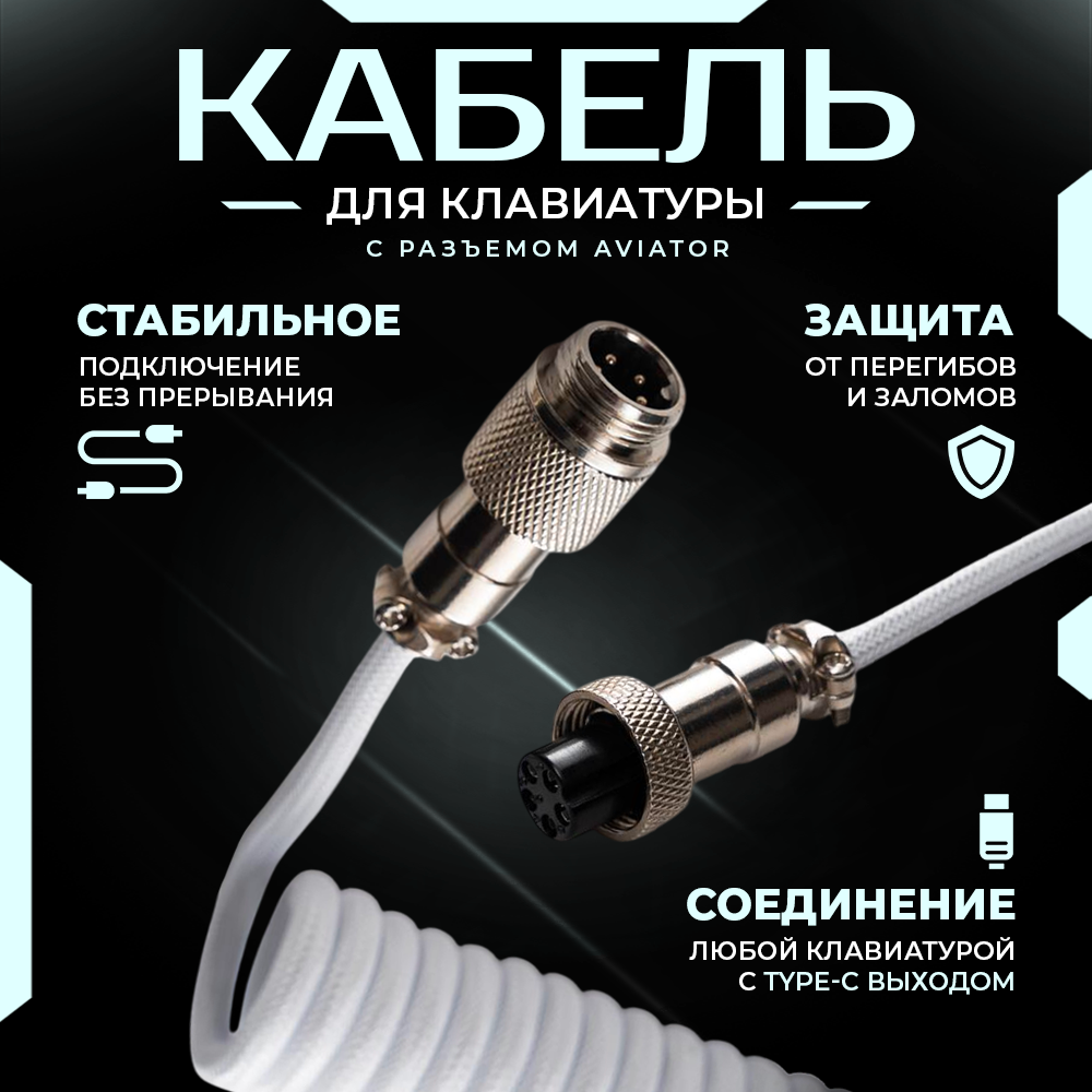 Кабель Booox Aviator GX16 (5-pin), для клавиатуры, витой, с оплеткой, USB 3.0, 1.8м, белый интересное: