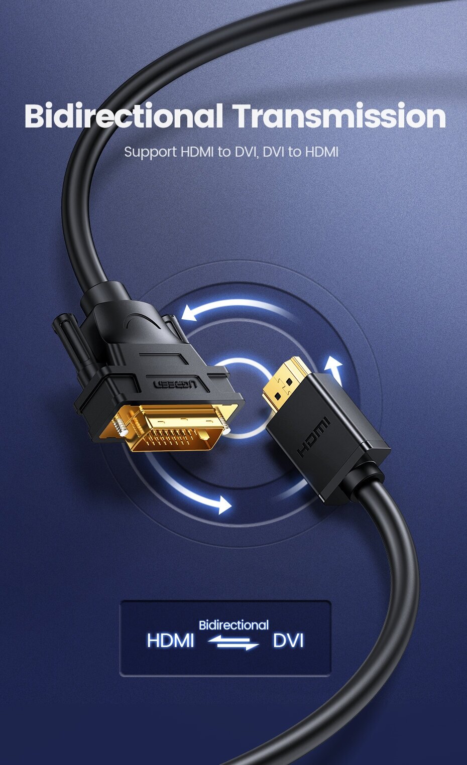 Кабель Ugreen HDMI - DVI-D (24+1), 30 AWG, OD 7.3 мм, 1080@60ц, 2 м (10135)