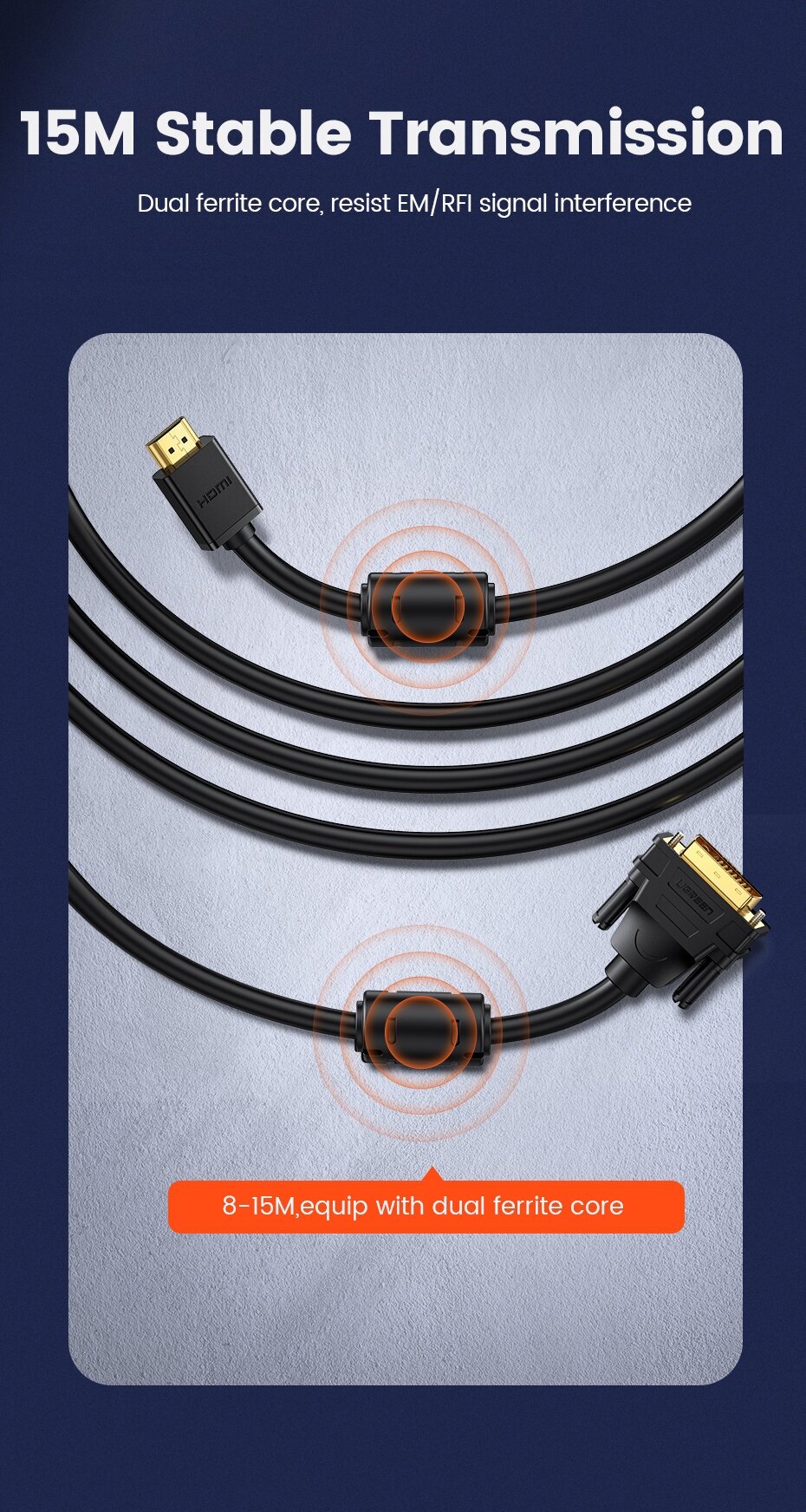 Кабель Ugreen HDMI - DVI-D (24+1), 30 AWG, OD 7,3 мм, 1080 60ц, 5 м (10137)