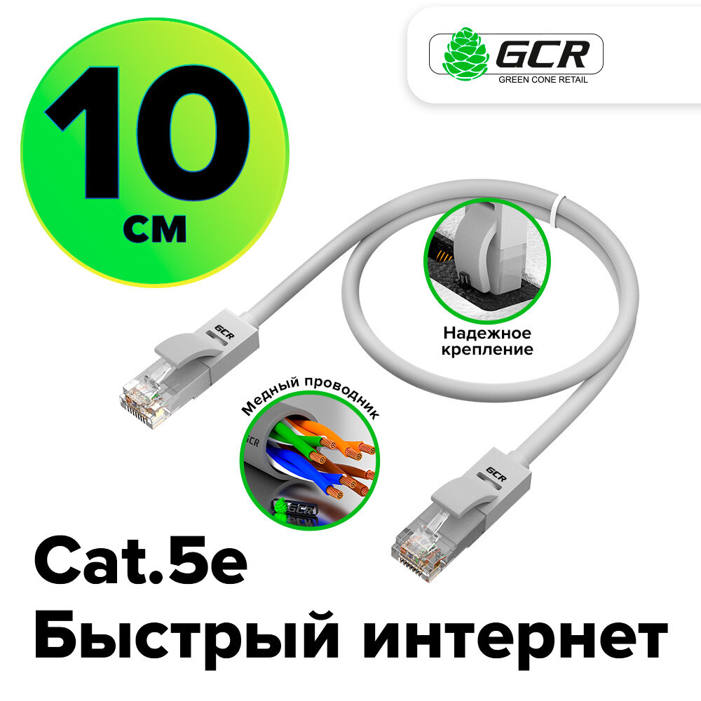 Купить Патч-корд UTP cat.5e 1 Гбит/с RJ45 LAN CCA компьютерный кабель для интернета контакты 24K GOLD (GCR-LNC500) серый 0.1м