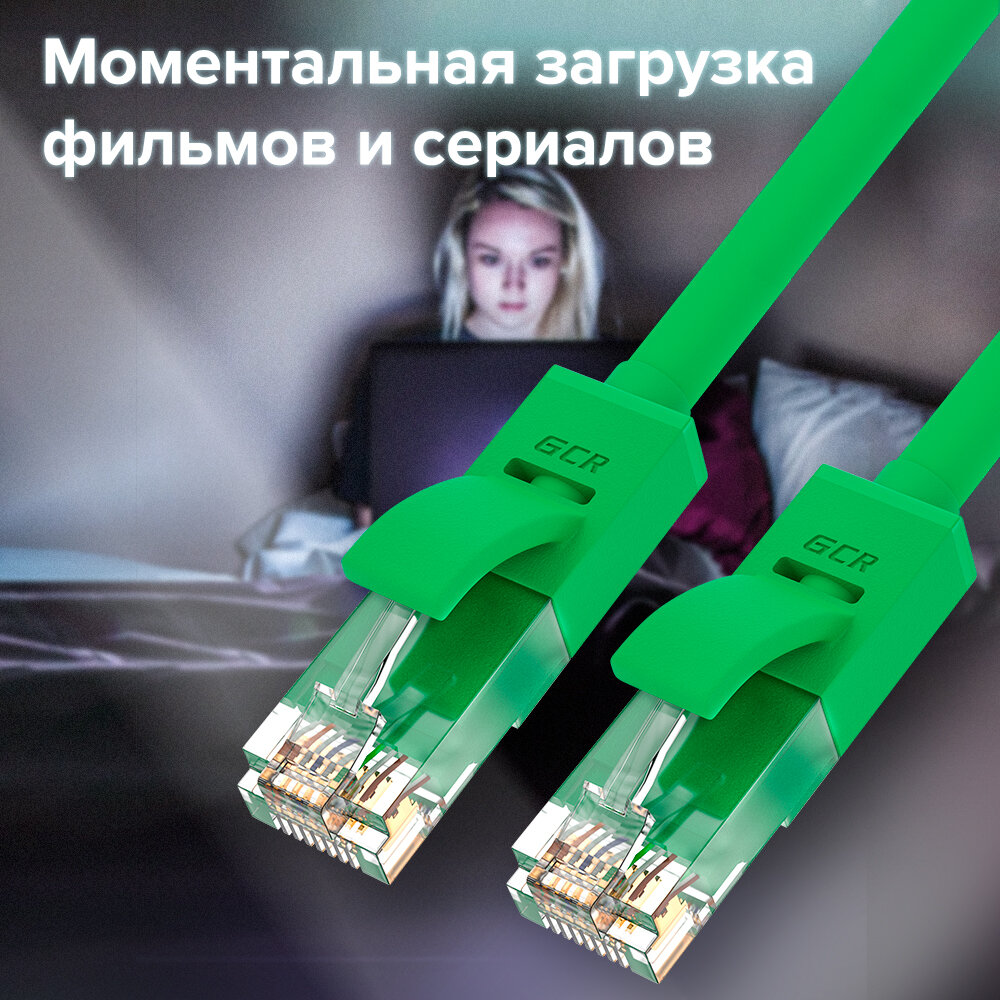 LAN кабель UTP cat.5e 1 Гбит/с RJ45 LAN CCA кабель для интернета контакты 24K GOLD (GCR-LNC500) Зеленый 15.0м
