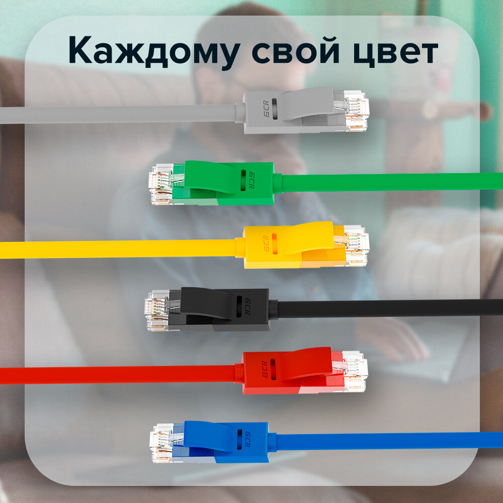 Патч-корд UTP cat.5e 1 Гбит/с RJ45 LAN CCA компьютерный кабель для интернета контакты 24K GOLD (GCR-LNC500) серый 6.0м