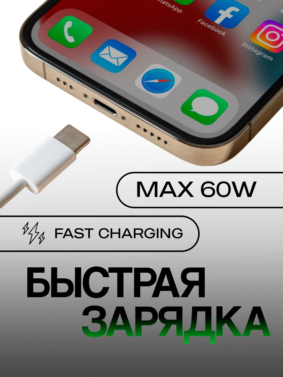 Кабель зарядный для Apple USB-C - USB-C (60W) со смарт чипом и поддержкой быстрой зарядки интересное: