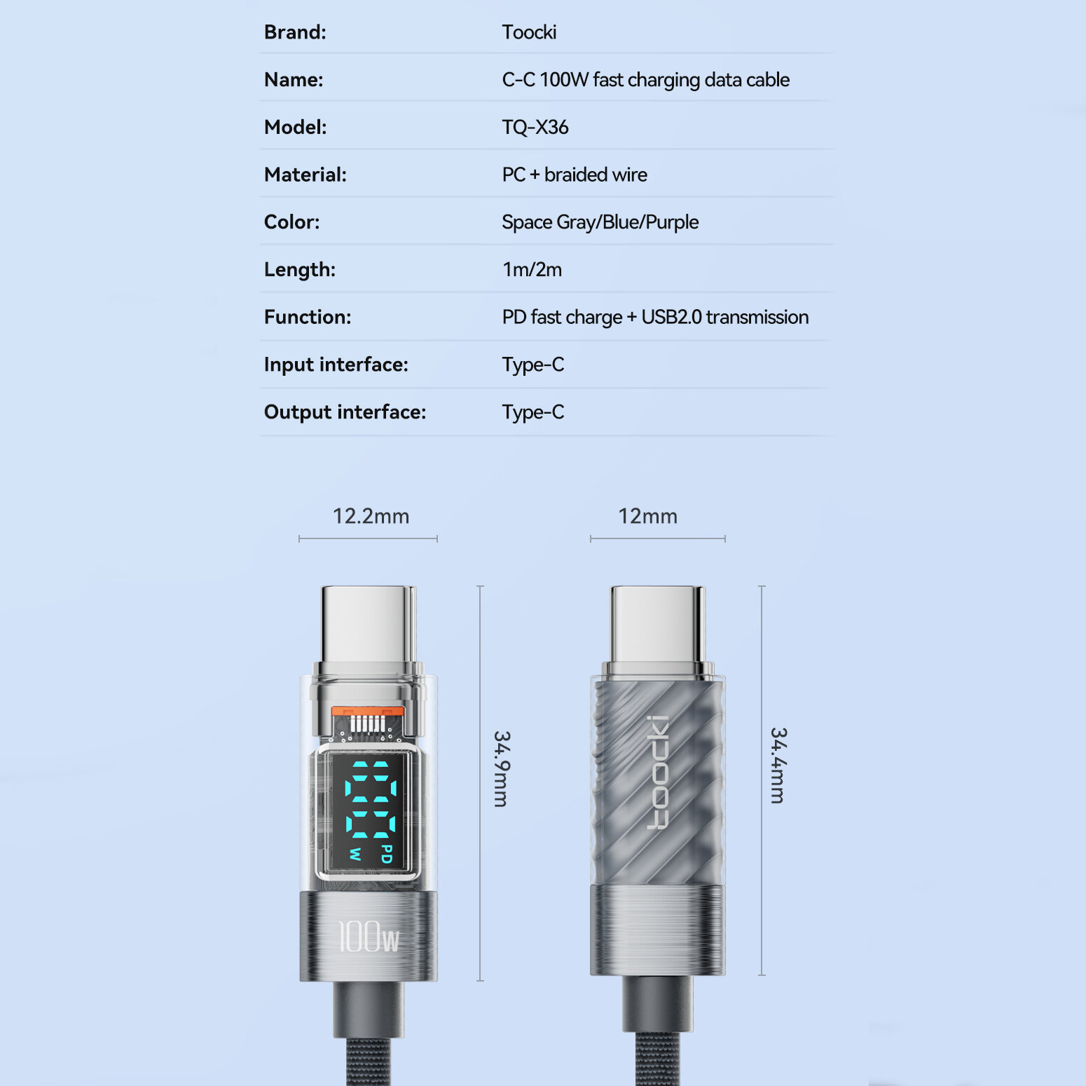 Кабель Toocki PD 100 Вт Type C для быстрой зарядки с цифровым дисплеем Type-C на Type-C интересное: