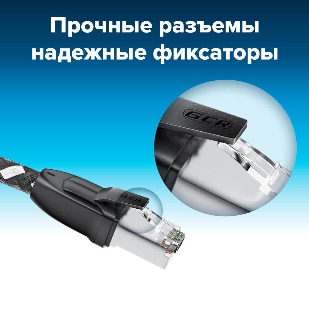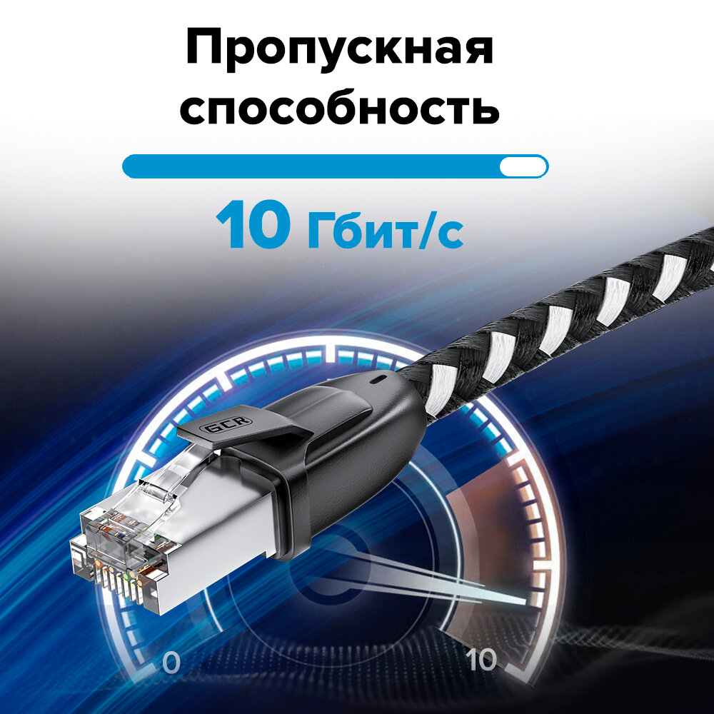 Компьютерный кабель для интернета 2м GCR кат 6 RJ45 частично нейлон черно-белый 24K GOLD