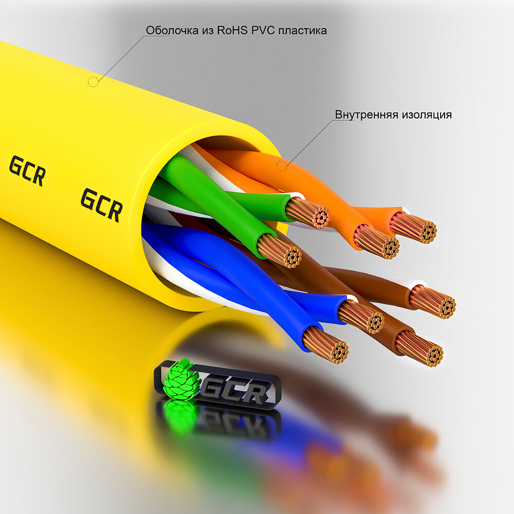 Lan кабель UTP cat.5e 1 Гбит/с RJ45 CCA контакты 24K GOLD (GCR-LNC500) желтый 20.0м