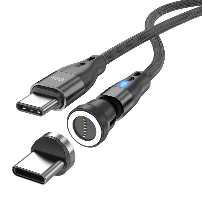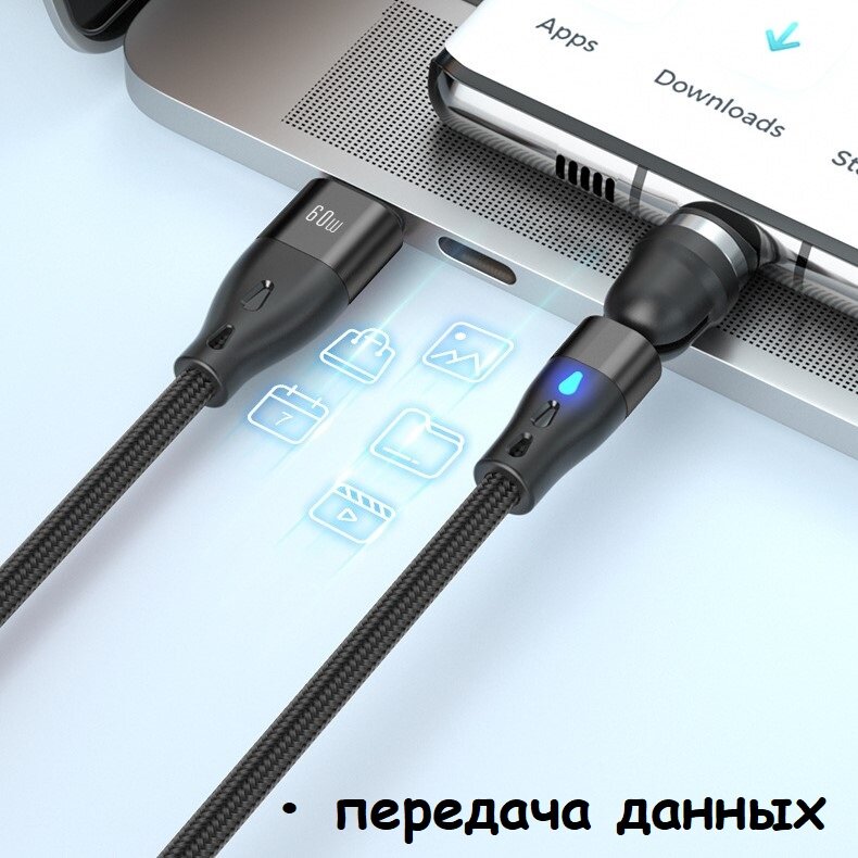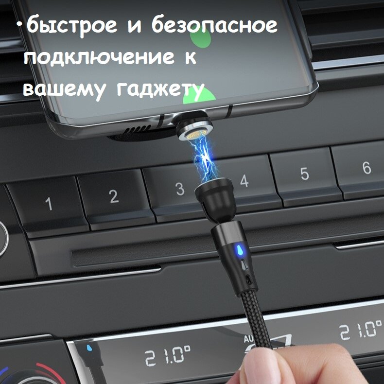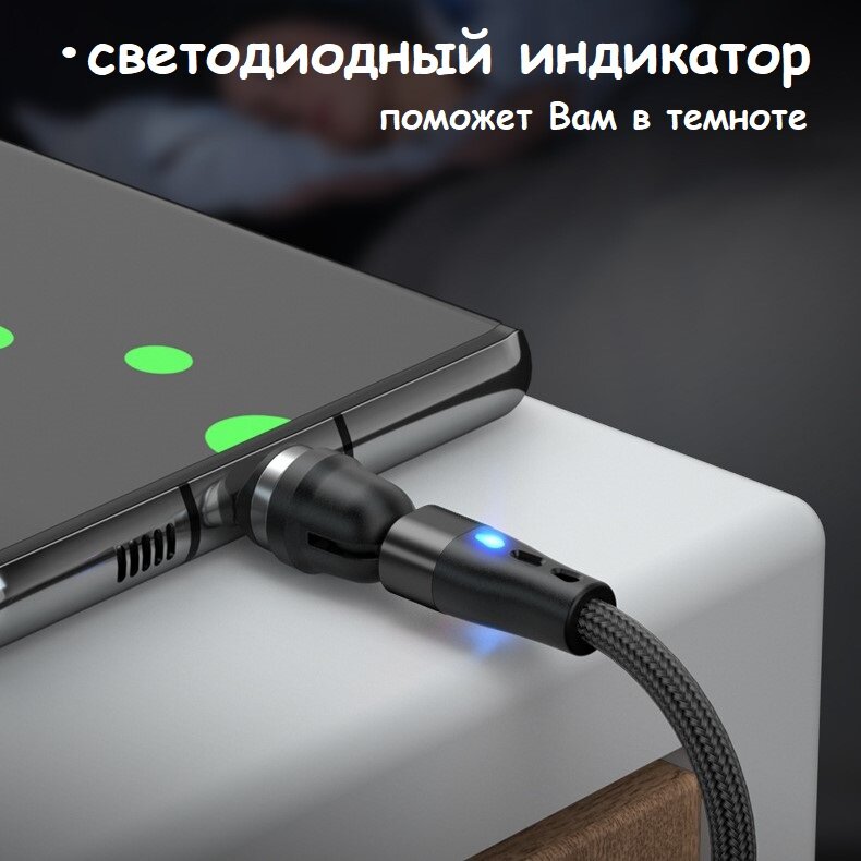 Магнитный провод/кабель для зарядки,7pin, вход Type-C 60W, с вращением на 360 и сгибом на 180 градусов / коннектор USB Type-C / 2м / черный интересное: