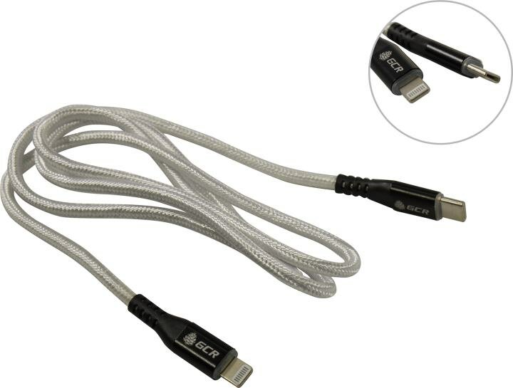 GCR Кабель 1.0m TypeC/Lightning MFI POWER DELIVERY 18 W, быстрая зарядка, белый нейлон, AL case черный интересное: