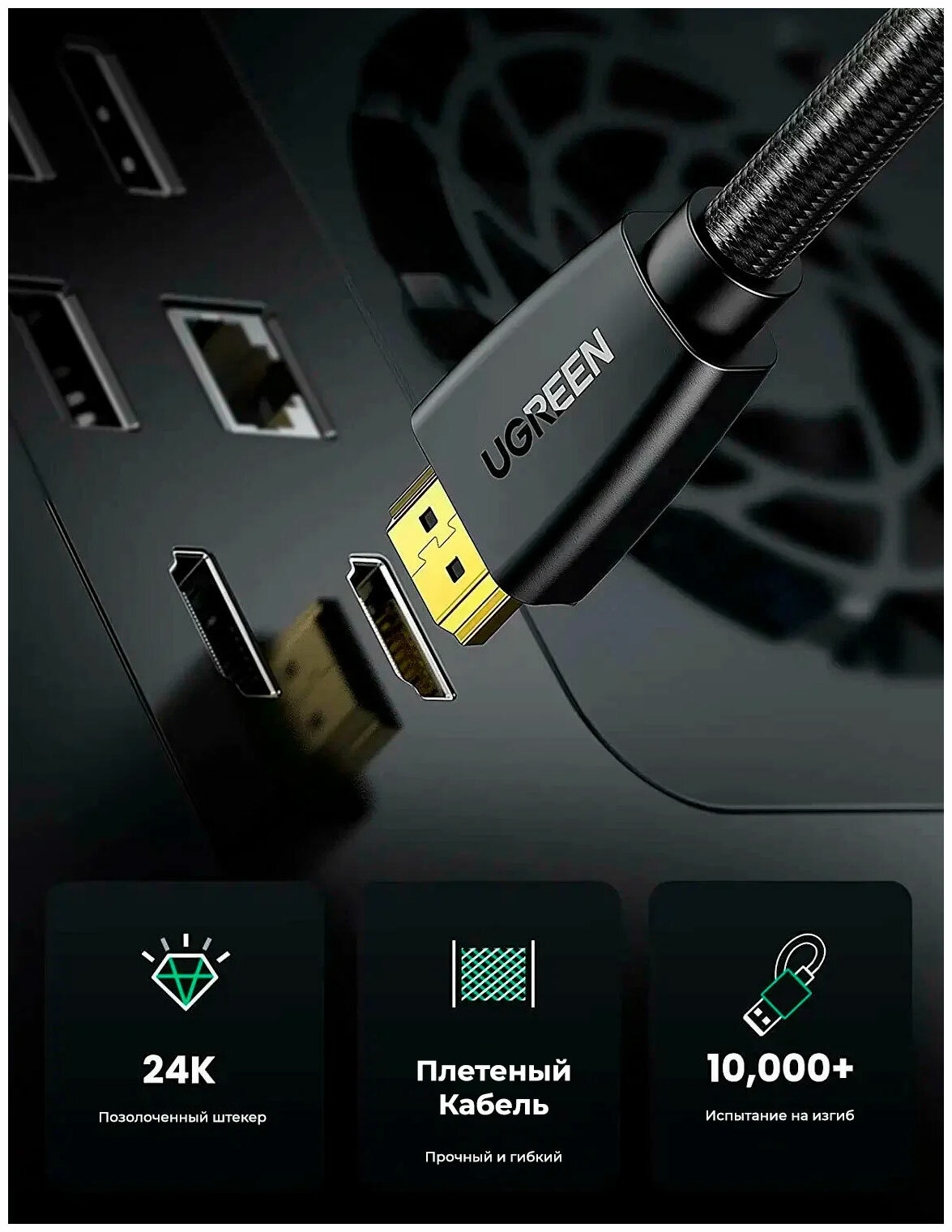 Кабель Ugreen HD118-40411 HDMI 2.0 to HDMI 2.0, в нейлоновой оплётке, 3m, Black