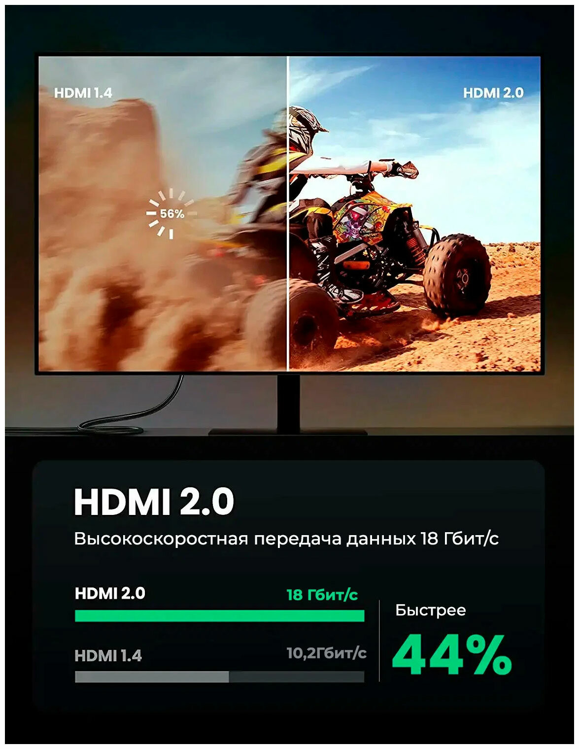 СохранитьКабель Ugreen HDMI Male-Male, 4К/60Гц, 2 м, черный (40410) интересное: