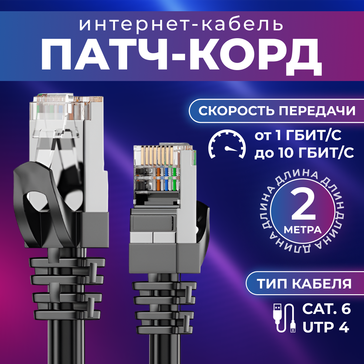 Купить Патч корд 2 м кат 6, интернет кабель RJ45 Cat.6 UTP, сетевой Ethernet Lan для соединения интернета роутера, витая пара