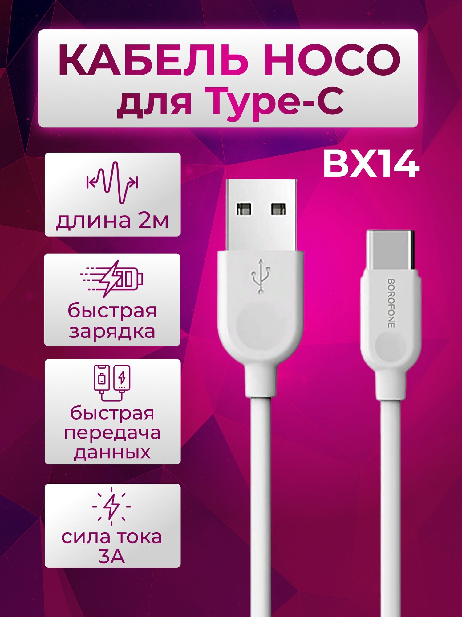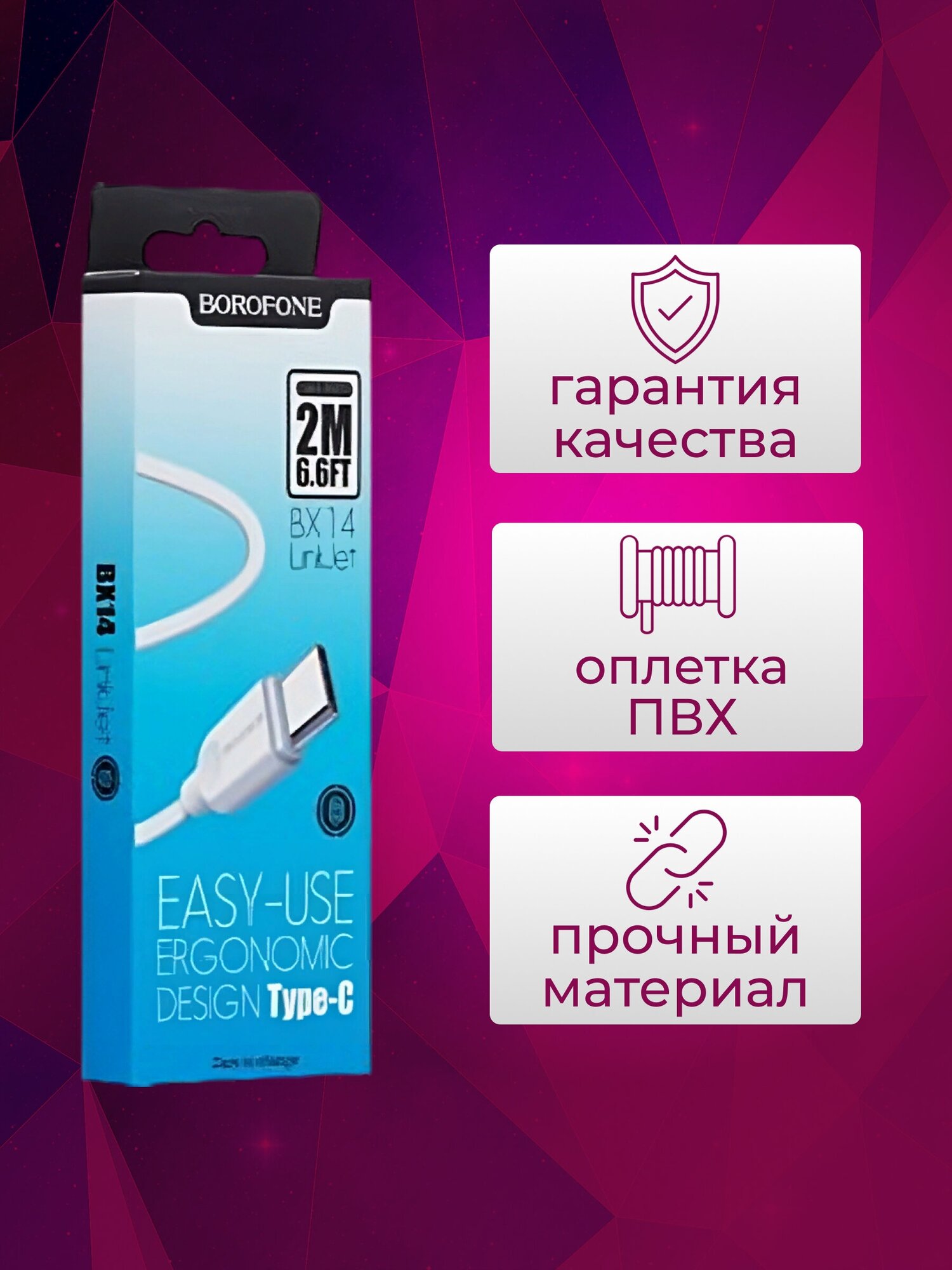 Кабель USB BOROFONE BX14 LinkJet USB - Type-C, 2.4А, 2 м, белый интересное: