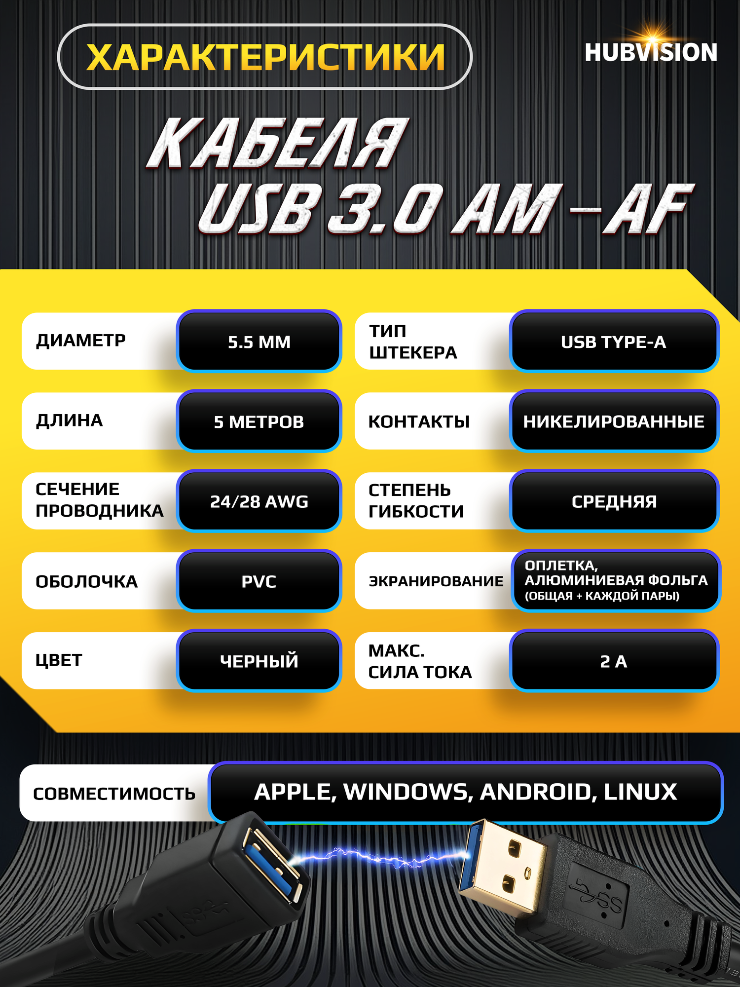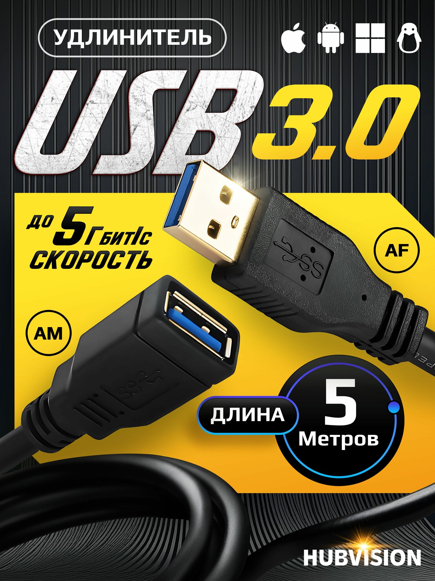 СохранитьКабель удлинитель USB 3.0 (AM - AF / папа - мама) 5 метров, черный интересное: