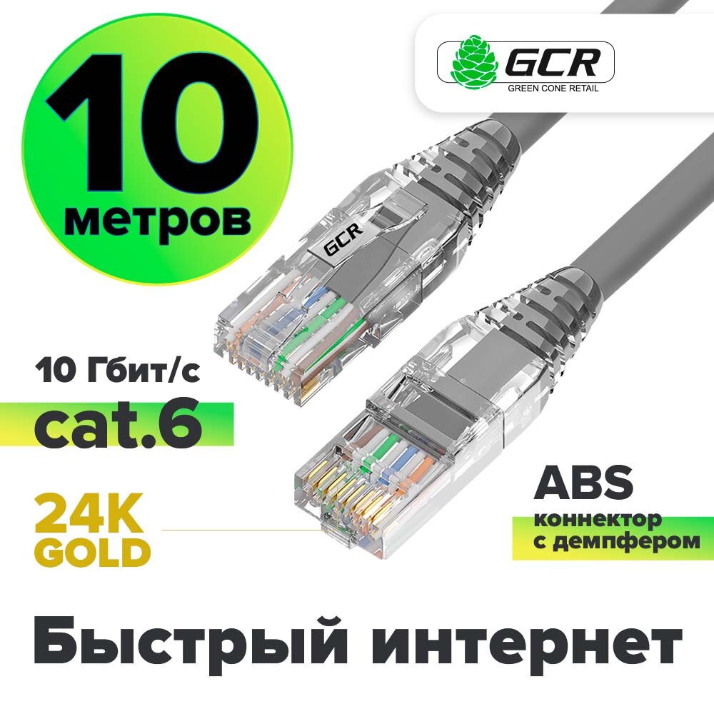 Купить LAN кабель UTP cat 6 для подключения интернета 10 Гбит/с RJ45 (GCR-L301) серый 10.0м