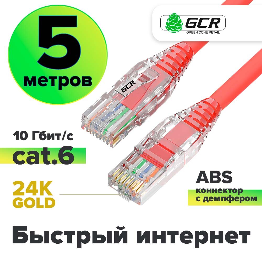 Купить Патч-корд UTP cat 6 LAN кабель для подключения интернета 10 Гбит/с RJ45 (GCR-L301) красный 5.0м