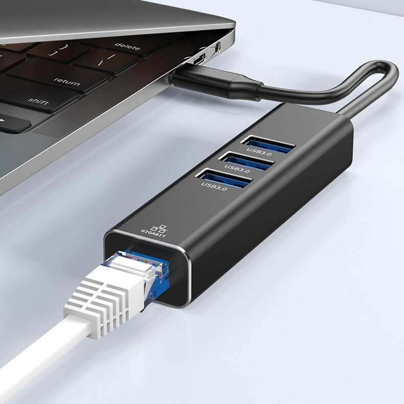 Купить Сетевой Ethernet адаптер переходник YUCUN ZCU303, USB 3.0, USB Type-С - LAN Rj45 1000 Mbps для интернет кабеля, черный