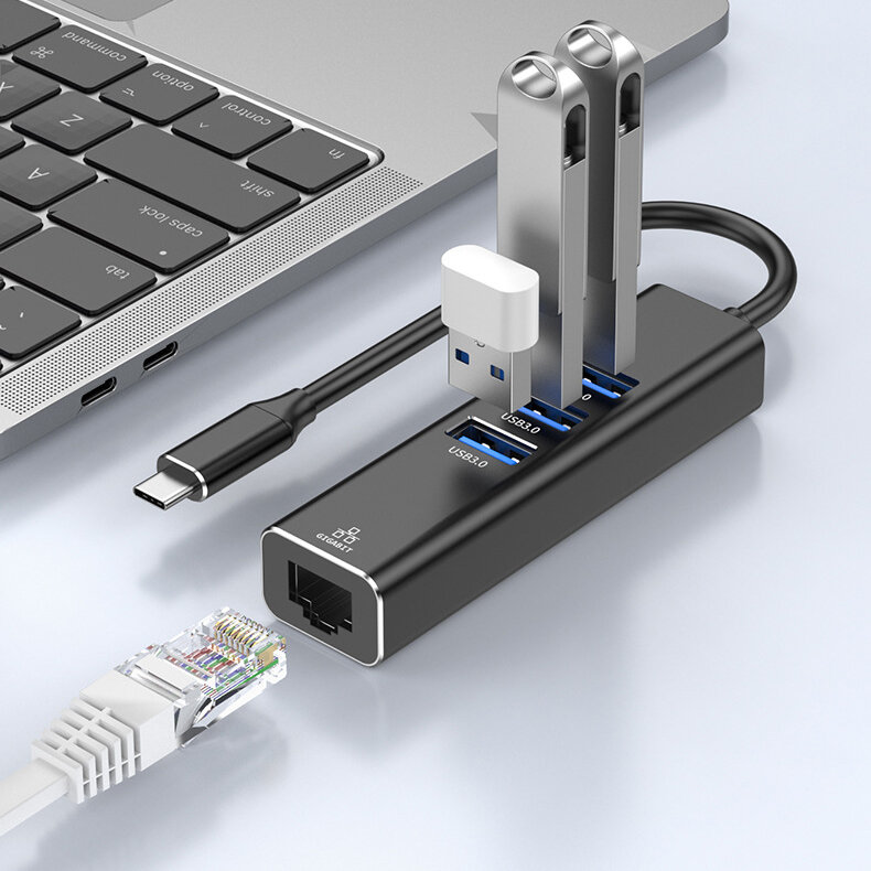 Сетевой Ethernet адаптер переходник YUCUN ZCU303, USB 3.0, USB Type-С - LAN Rj45 1000 Mbps для интернет кабеля, черный интересное: