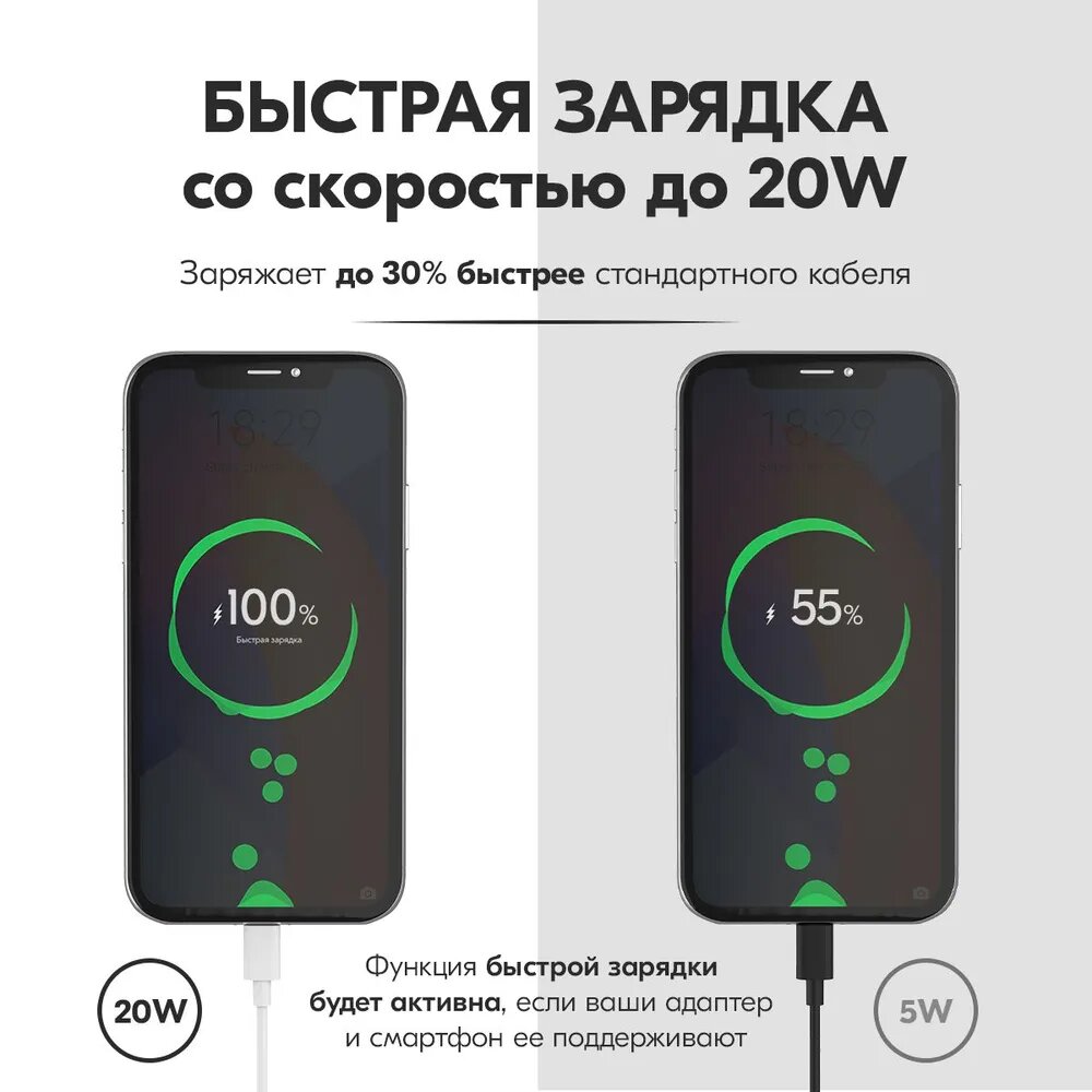 Кабель USB-C to Lightning , 1 метр белый для зарядки телефона iPhone/ Зарядка для iPhone /