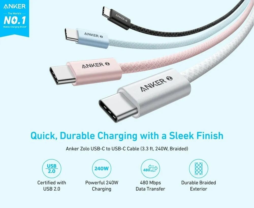 Кабель ANKER Zolo USB-C to USB-C, 240W, 1.5m - черный интересное:
