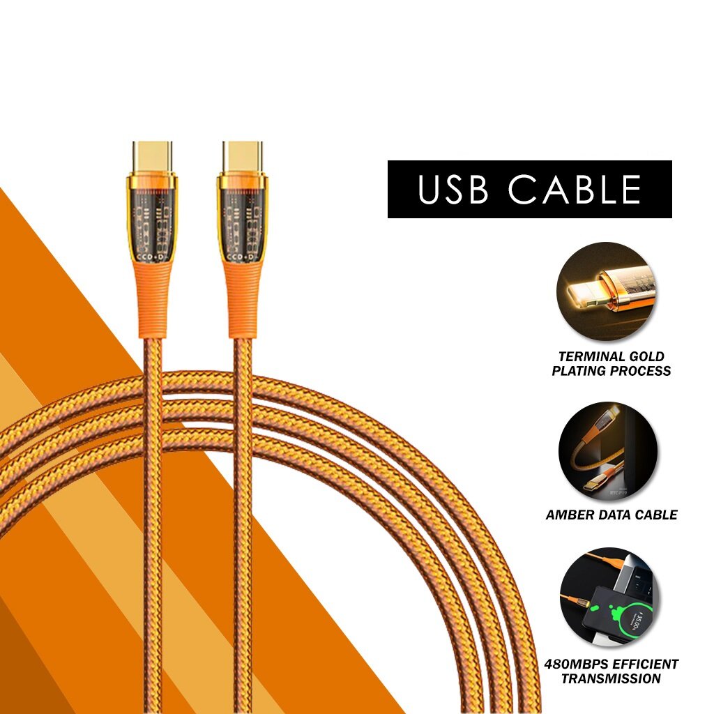 Кабель для быстрой зарядки и передачи данных Recci Amber Gold, Type-C to Type-C, PD100W, 150 см, Оранжевый интересное:
