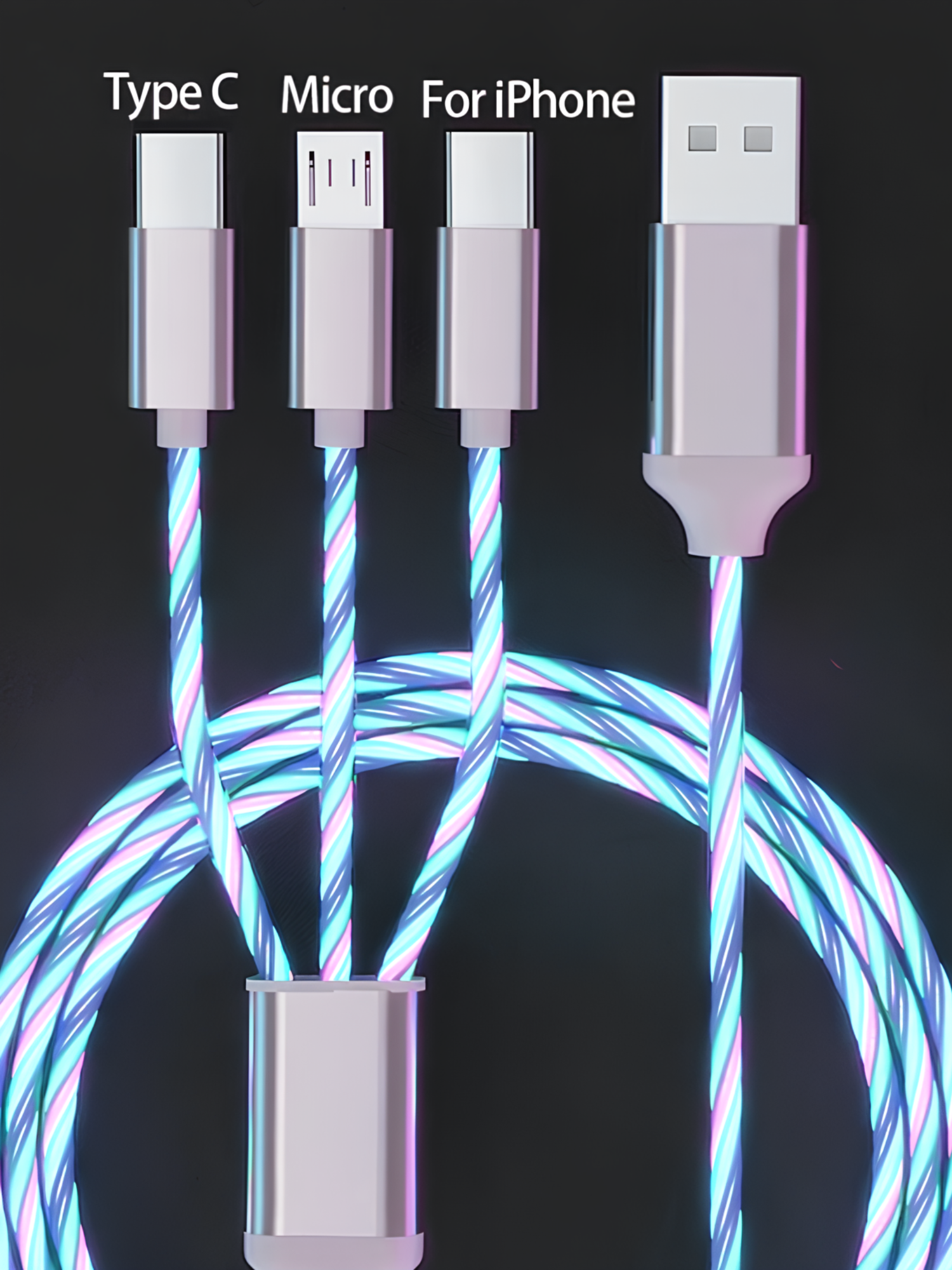 Зарядный кабель для iPhone, Android, iPad, Xiaomi, Meizu, 3 в 1, Type-C, Micro-USB, Lightning, светящийся, белый интересное:
