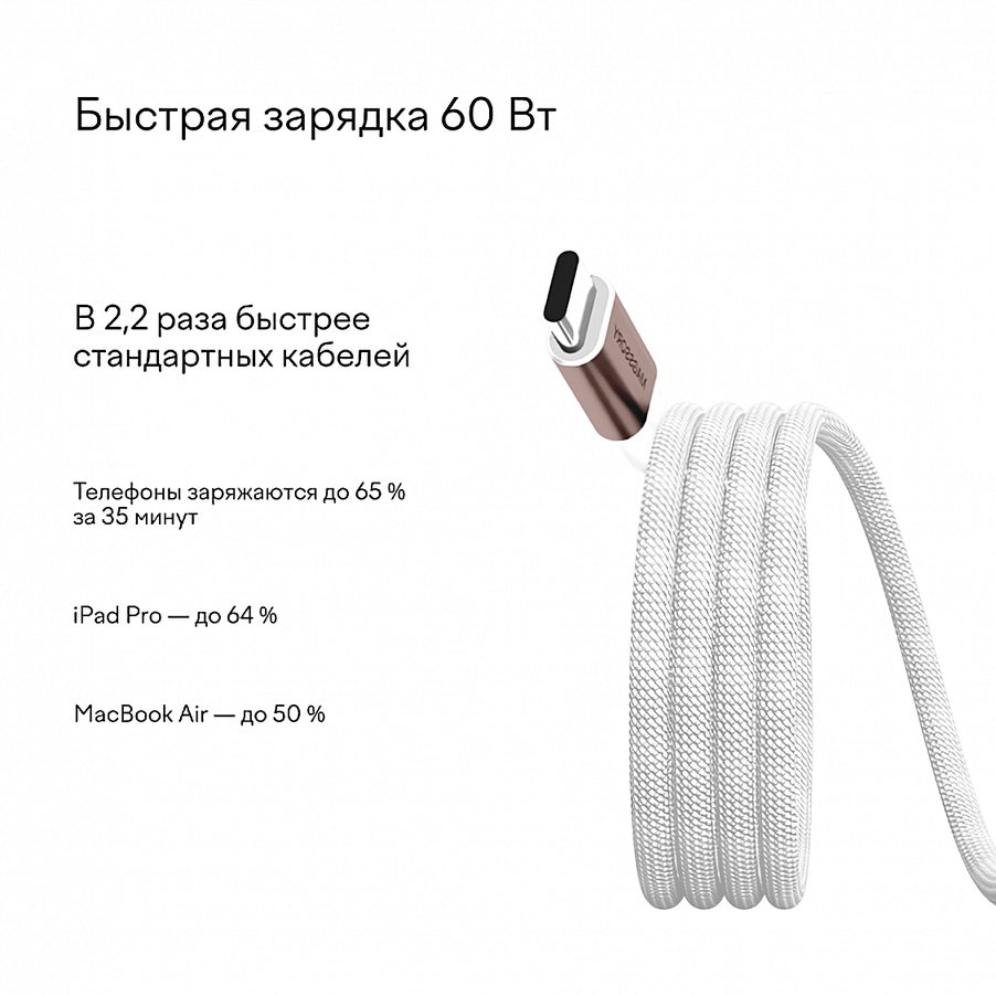 Магнитный кабель Magssory CBL001 USB Type-C, 60W, 1.2м, титан интересное: