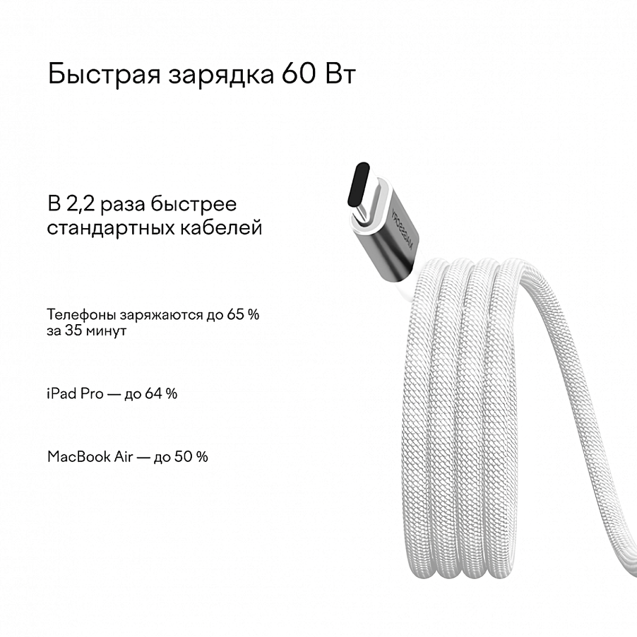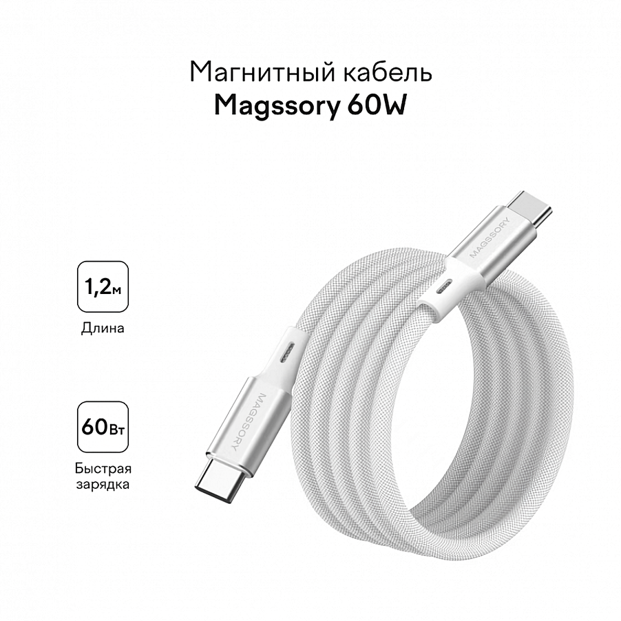 Магнитный кабель Magssory CBL001 USB Type-C, 60W, 1.2м, серебристый интересное: