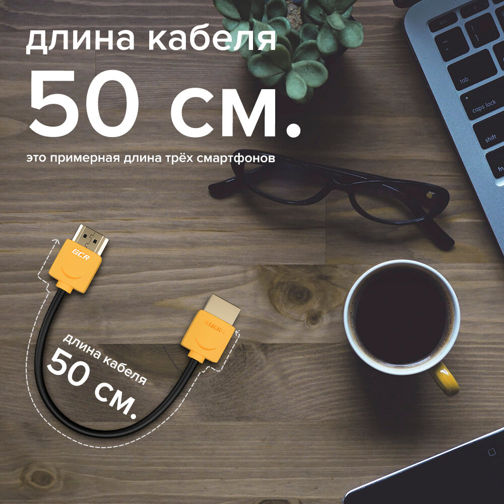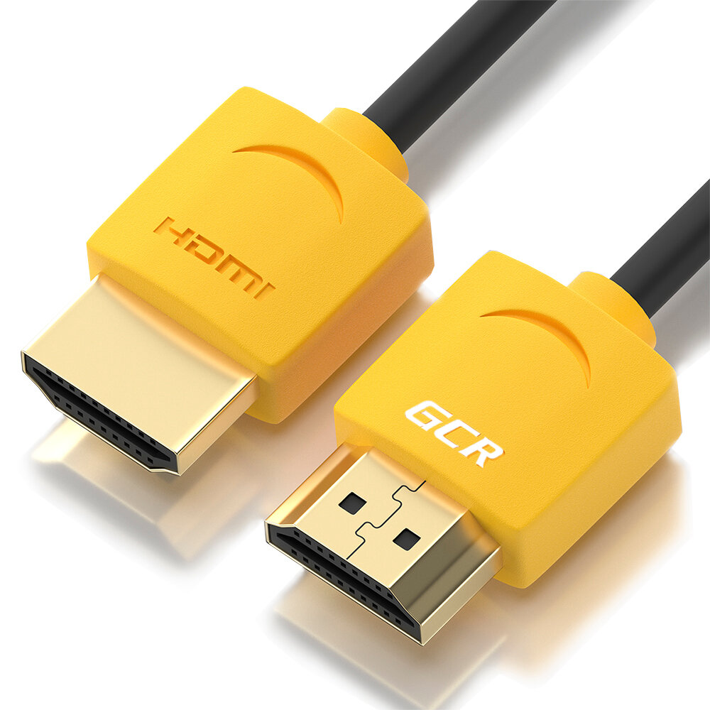 Купить GCR Кабель SLIM 50см HDMI 2.0, черный с желтыми коннекторами, OD3.8mm, HDR 4:2:2, Ultra HD, 4K 60 fps 60Hz, 3D, AUDIO, 18.0 Гбит/с, 30/30 AWG