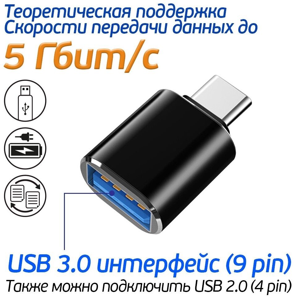 Переходник USB 3.0 на Type-C, Адаптер OTG USB-A 3.0 гнездо на Type-C штекер интересное: