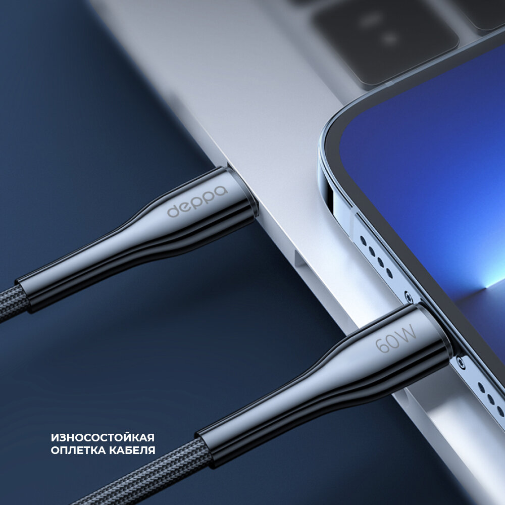 Кабель Apollo Type-C – Type-C, 60Вт, 1.5 м, черный, Deppa 72526-OZ/ Без заводской упаковки интересное: