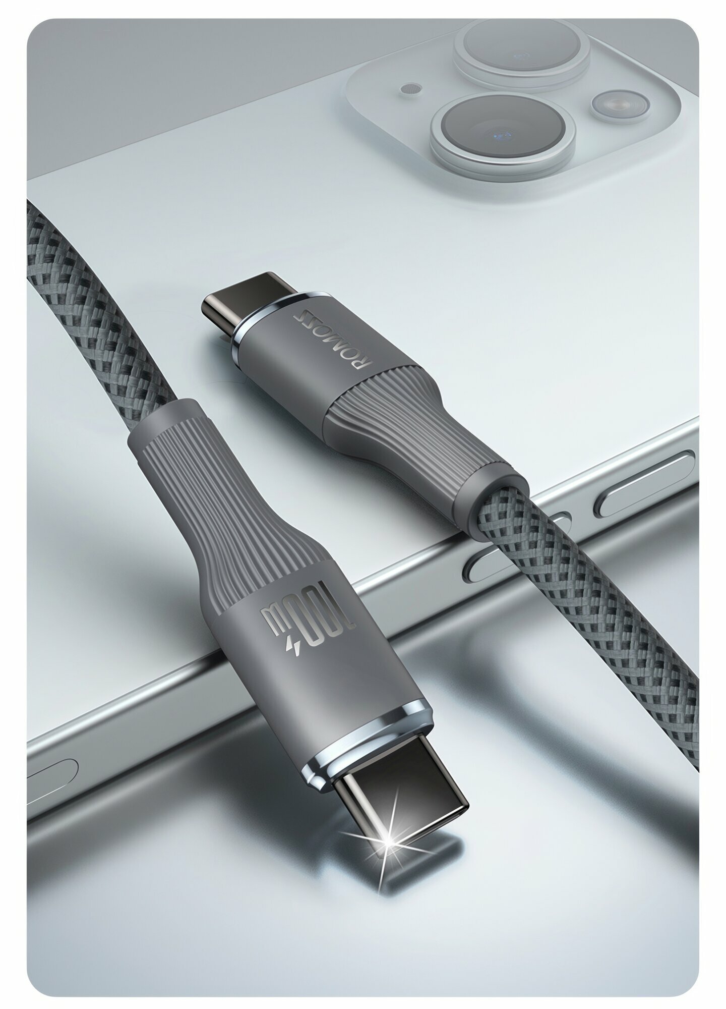 Кабель USB-C Romoss CB3224, Type-C - Type-C, 5 A, 100W, 2 м, серый