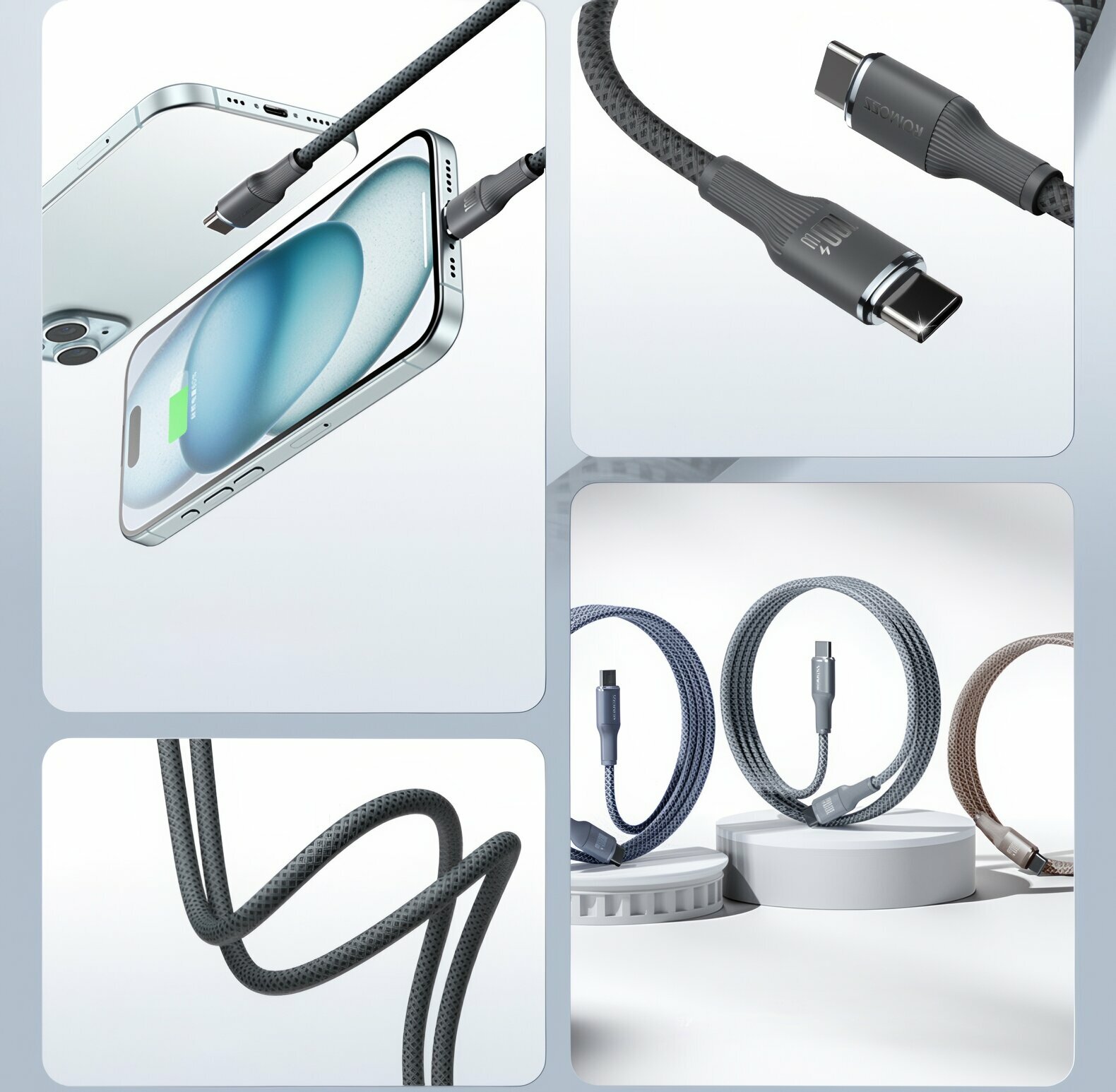 Кабель USB-C Romoss CB3224, Type-C - Type-C, 5 A, 100W, 1.2 м, тёмно-коричневый