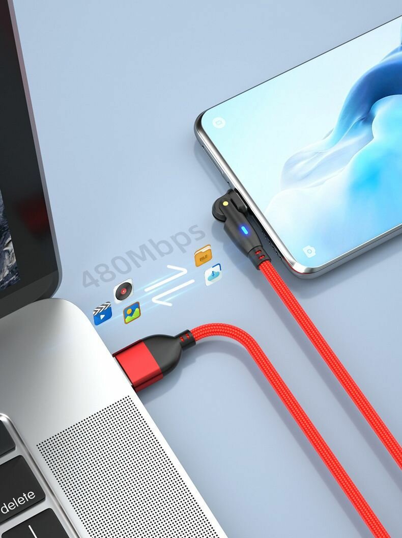 Кабель USB Type-C с поворотным коннектором, передача данных, быстрая зарядка 3А, длина 2м